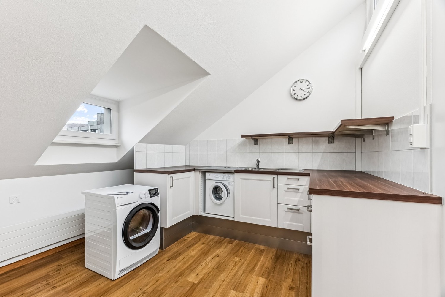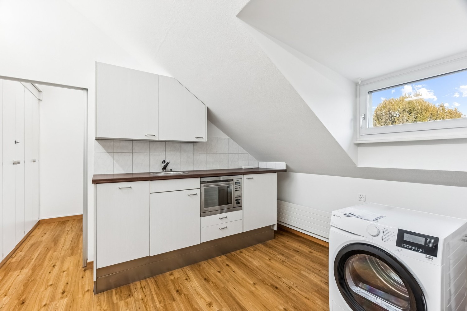 Auf der rückwärtigen Seite zum malerischen Innenhof hin liegt die grosszügige Teeküche mit Waschmöglichkeit.