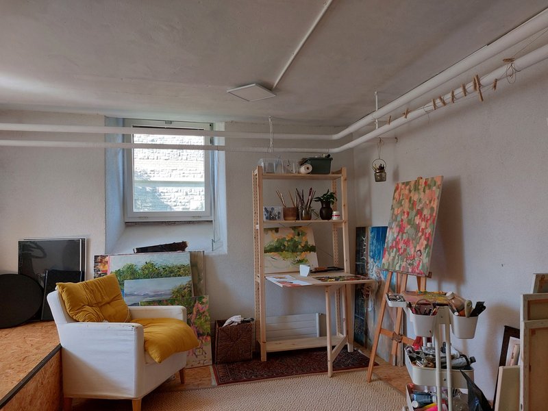 Aus zeitlichen Gründen gebe ich meinen tollen Platz im Atelier an der Schweizerhausstrasse 4 in Luzern auf. Der Hobbyraum befindet sich im Untergeschoss des Studentenwohnheims und wird mit 3 weiteren Personen geteilt. Dein Bereich ist ca. 10 m². Zusätzlich hast du direkten Zugang in den Garten des Studentenwohnheims mit top Aussicht, den du mitbenutzen darfst. Eine Toilette befindet sich ebenfalls im Untergeschoss und steht dir zur Vefügung. Der Raum ist per sofort verfügbar und eignet sich perfekt als Kunststudio oder für alle, die einen kreativen Arbeitsplatz suchen. Manches Equipment kann nach Absprache auch übernommen werden.