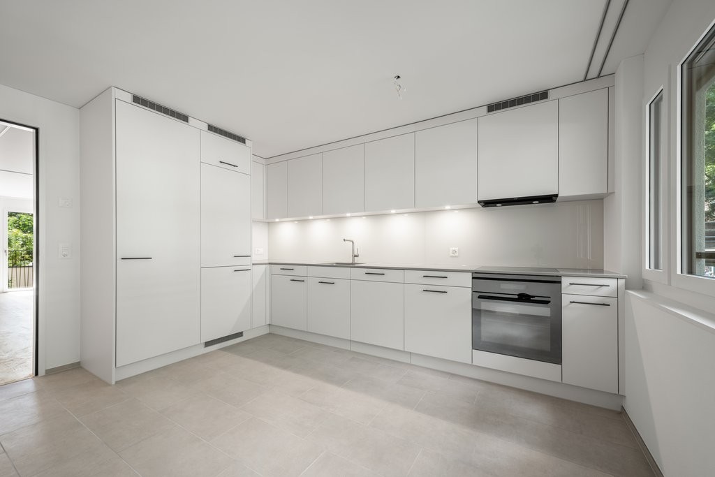 - Küche und Nasszellen mit pflegeleichtem Plattenboden