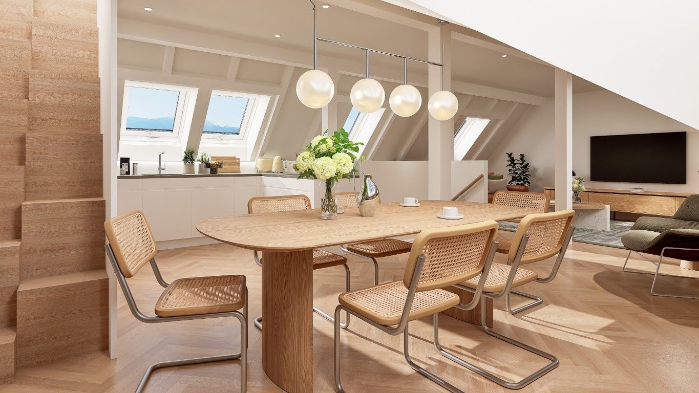Elegante Maisonette-Grundrisse: Offene, lichtdurchflutete Living- & Dining-Areas auf zwei Etagen, welche ein ein einzigartiges Raumgefühl schaffen.
