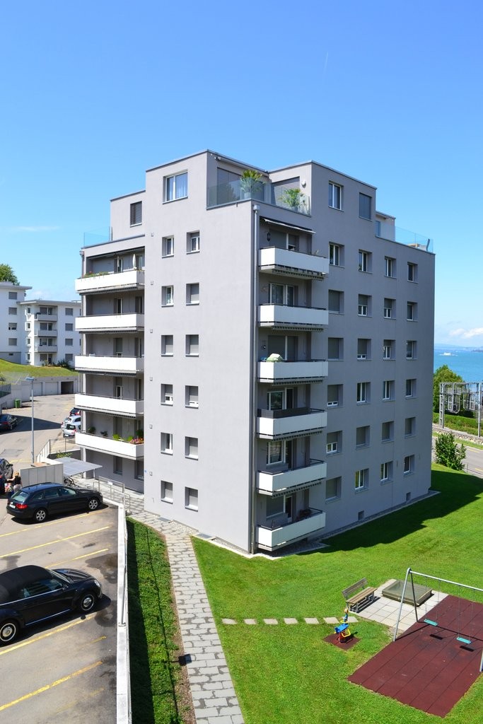 Die Liegenschaft wurde im Jahr 2014 komplett saniert und liegt direkt gegenüber dem Strandbad Au. Die Bushaltestelle und auch der Bahnhof Au sind in wenigen Minuten erreichbar.
