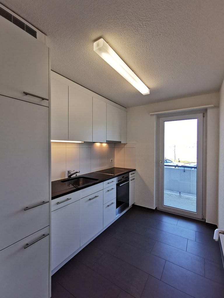 -keramische Bodenplatten in Küche, Bad und Korridor