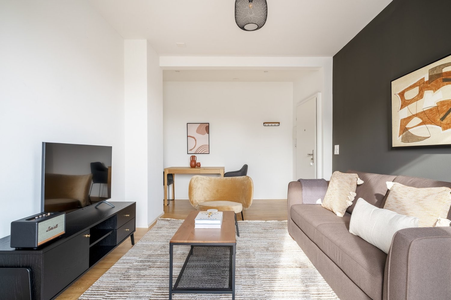 Durchdachtes Design mit maßgeschneiderten Oberflächen und moderner Einrichtung, und eine voll ausgestattete Küche, Sie werden das „Ich bin zu Hause“-Gefühl mit diesem Blueground Wohnung genießen. Egal, ob Sie in Ihrem stilvoll Wohnzimmer die neuesten und besten Unterhaltungssendungen über den Smart-TV oder den kabellosen Premium-Lautsprecher streamen oder sich auf der hochwertigen Matratze ausruhen – Sie werden sich in alles verlieben, was dieses Horgen Wohnung zu bieten hat.