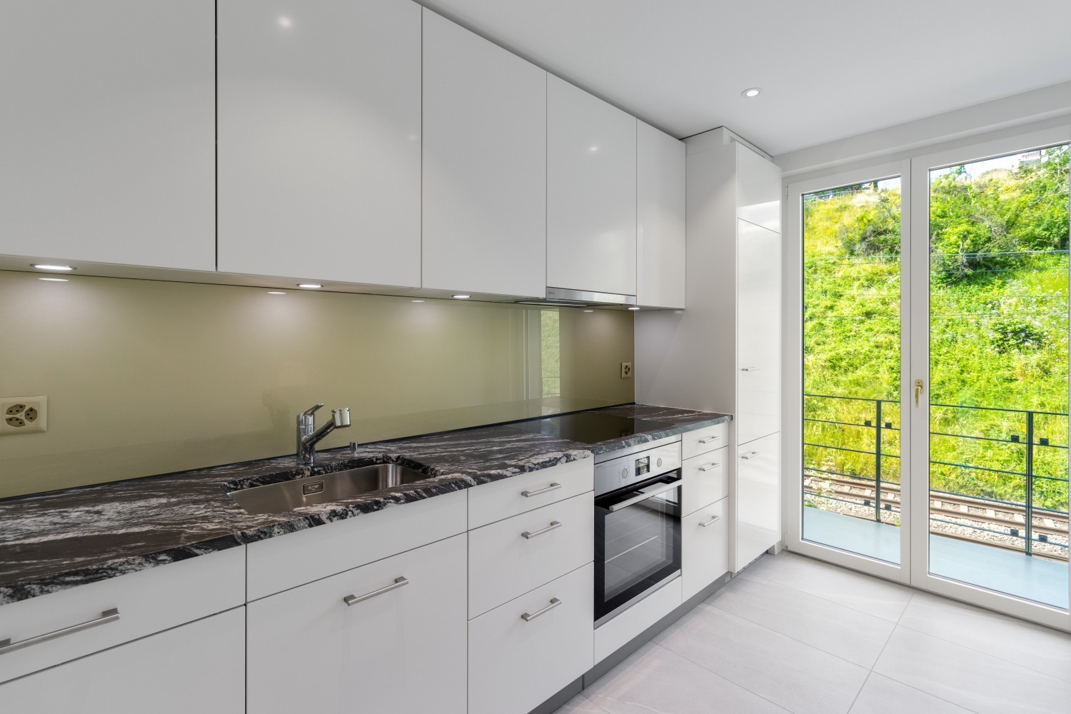 Hochwertige, offene Forster-Küche mit Granitabdeckung