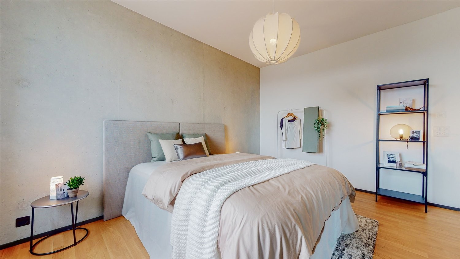- Wände teilweise mit lasiertem Sichtbeton oder weissem Wandabrieb, Decke mit Weissputz