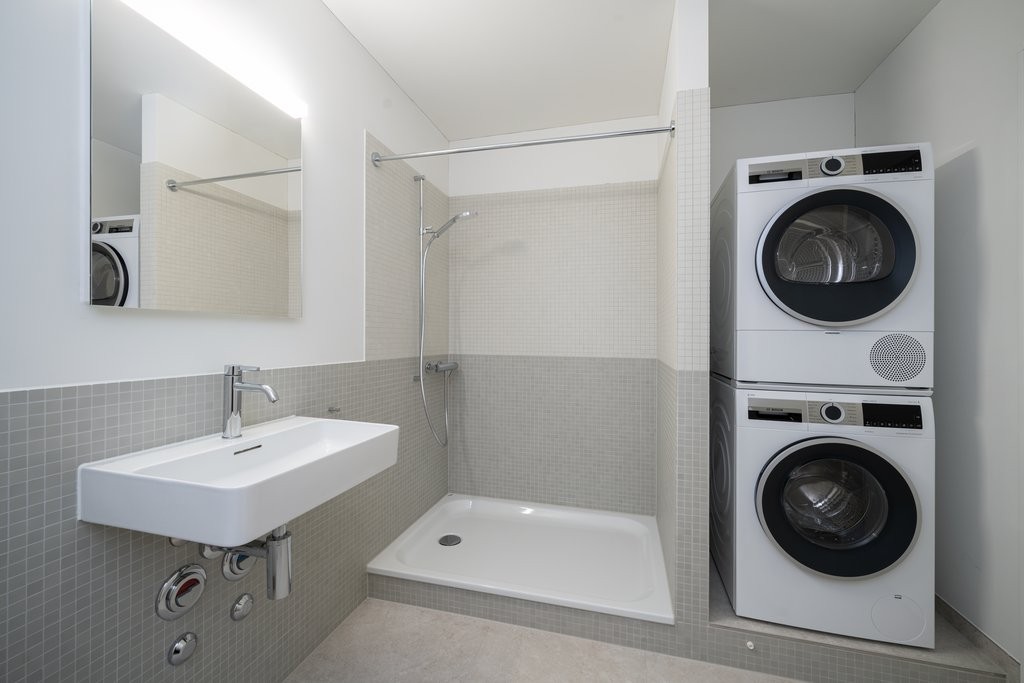 - Eigener Waschturm in der Wohnung (Waschmaschine und Tumbler)