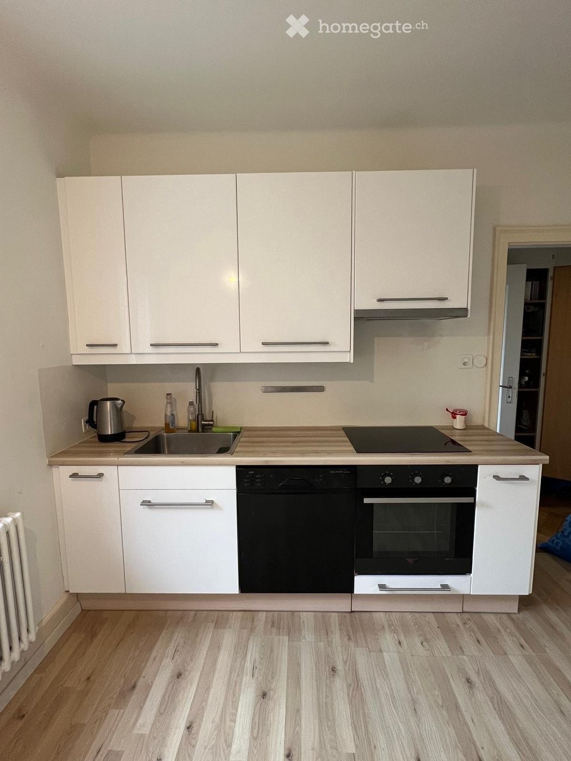 Küche mit Induktionsherd, Kühlschrank mit TK