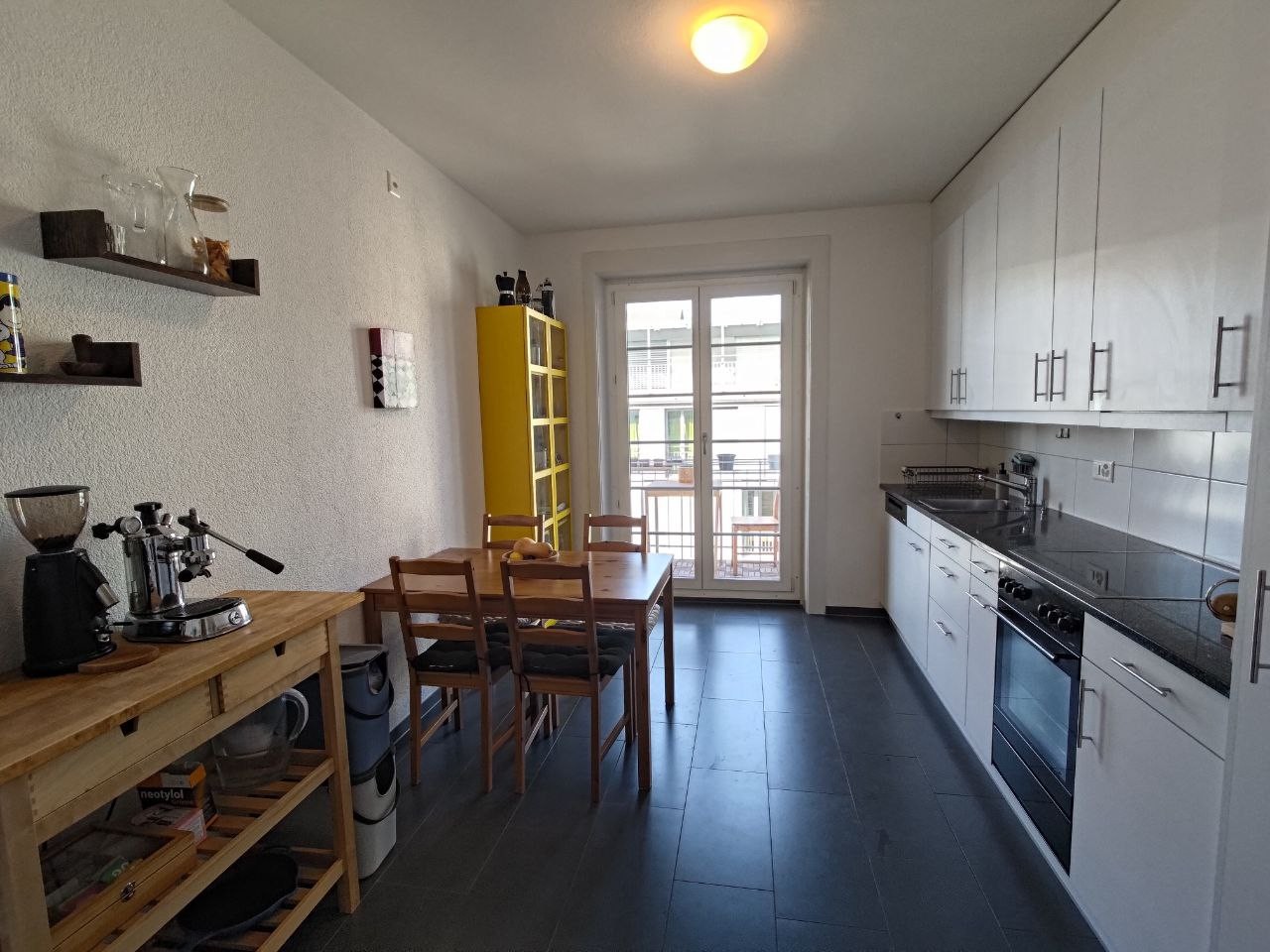 eine grosse Wohnküche, voll ausgestattet, mit Zugang zu zweitem Balkon