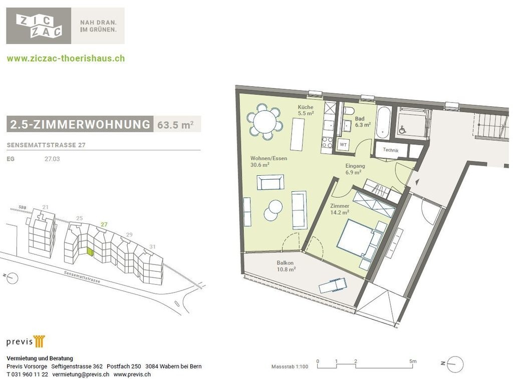 Die Liegenschaft liegt sehr zentral direkt am Bahnhof Thörishaus Dorf, in nächster Nähe des Autobahnanschlusses Flamatt oder Niederwangen.