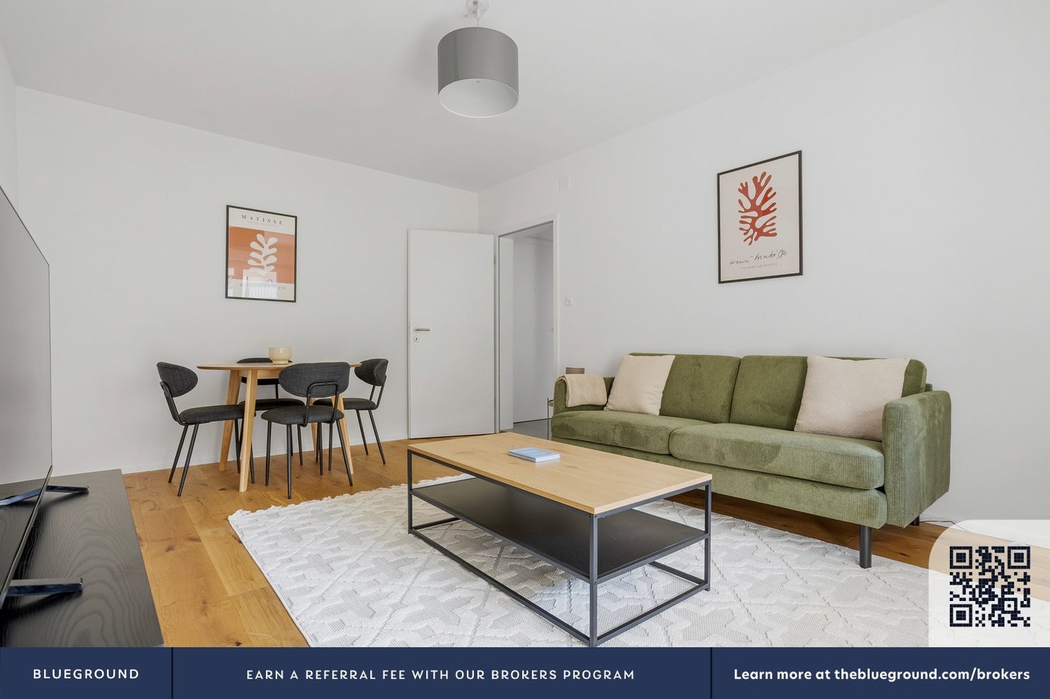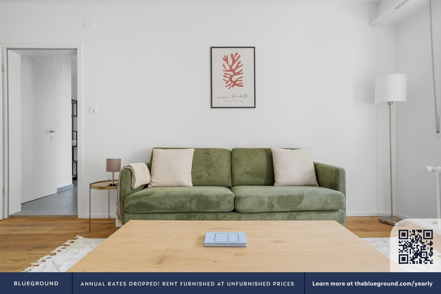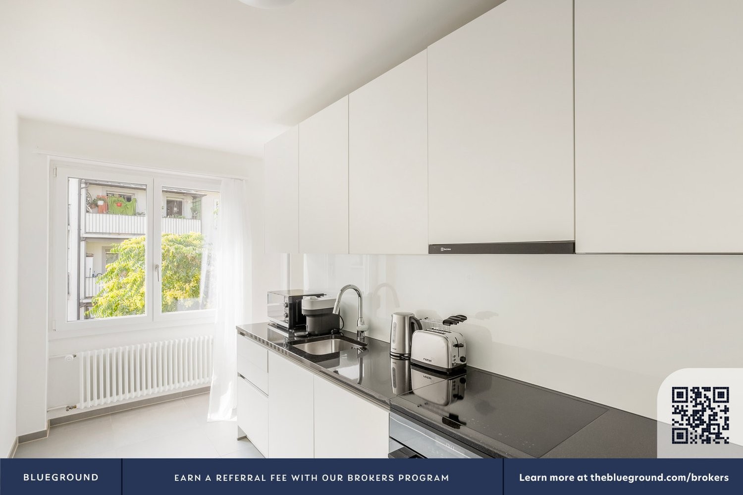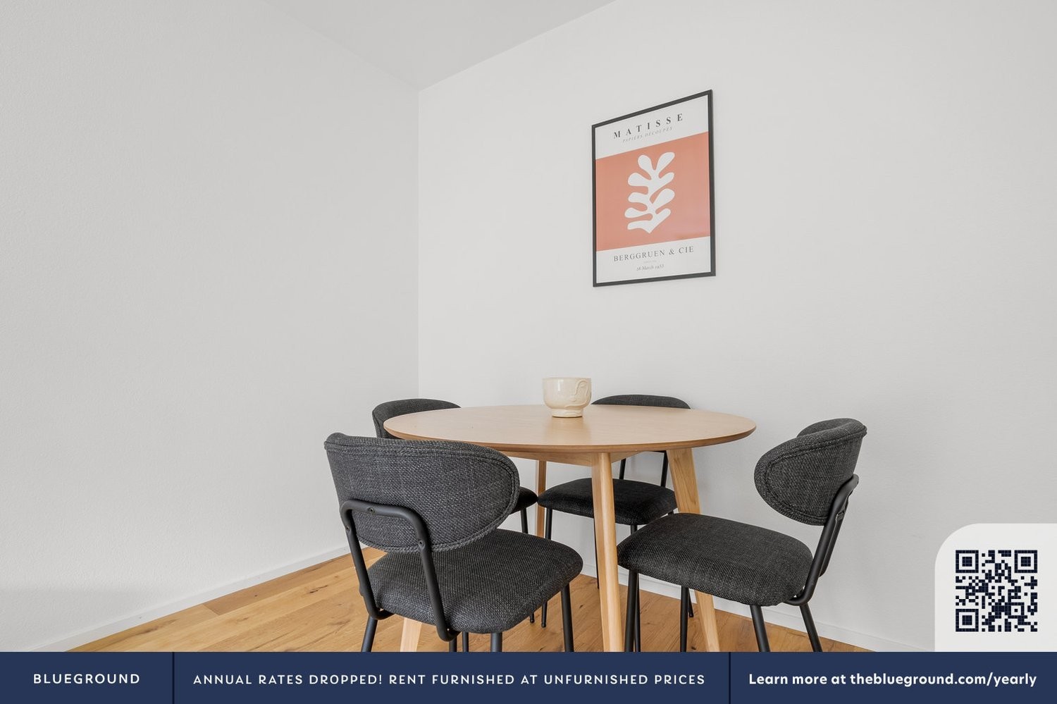 Wie bei jedem Blueground Wohnung finden Sie einen durchdacht gestalteten Raum mit schönen Möbeln. und eine voll ausgestattete Küche in diesem Ein-Schlafzimmern Immobilie. Und dank unserer hochwertigen Matratzen können Sie sich entspannen, weil Sie sich immer wie zu Hause fühlen werden. Wenn Sie Lust auf etwas Spaß haben, können Sie die Basel -Atmosphäre genießen oder sich die Unterhaltung mit dem kabellosen Premium-Lautsprecher oder dem Smart-TV direkt nach Hause holen.