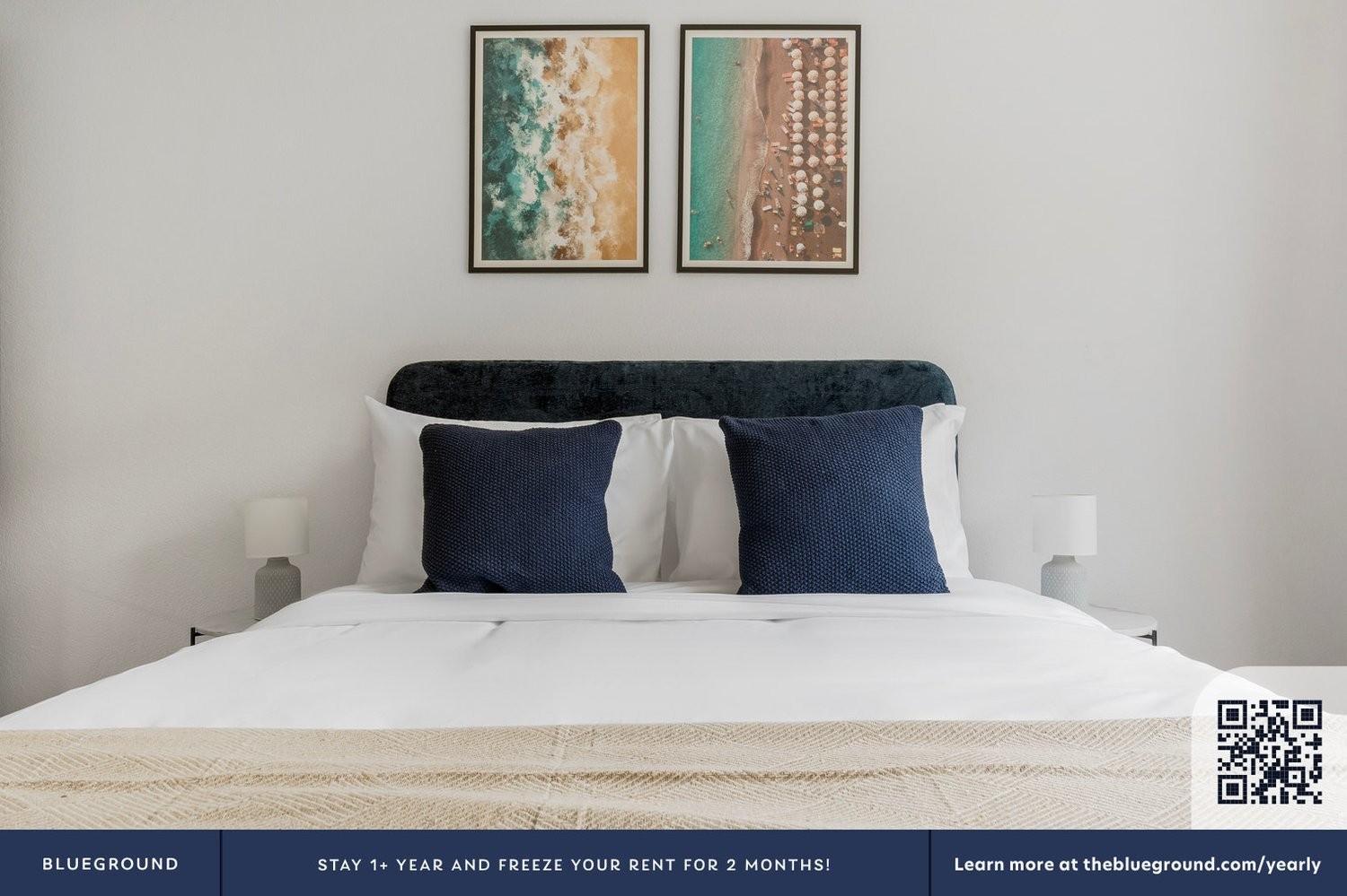 Dieses Blueground Wohnung bietet flexible Mietoptionen, sodass Sie es für drei Monate, ein Jahr oder länger buchen können.Haustiere sind willkommen, allerdings gelten Gewichts- und Rassenbeschränkungen, für die Gebühren anfallen können.Wir sind sehr stolz darauf, dass alle gezeigten Fotos in unseren eigenen Einheiten mit unserer tatsächlichen Einrichtung aufgenommen wurden. Das heißt, wir aktualisieren regelmäßig unsere Dekoration und Möbelanordnung, die von dem abweichen kann, was abgebildet ist.