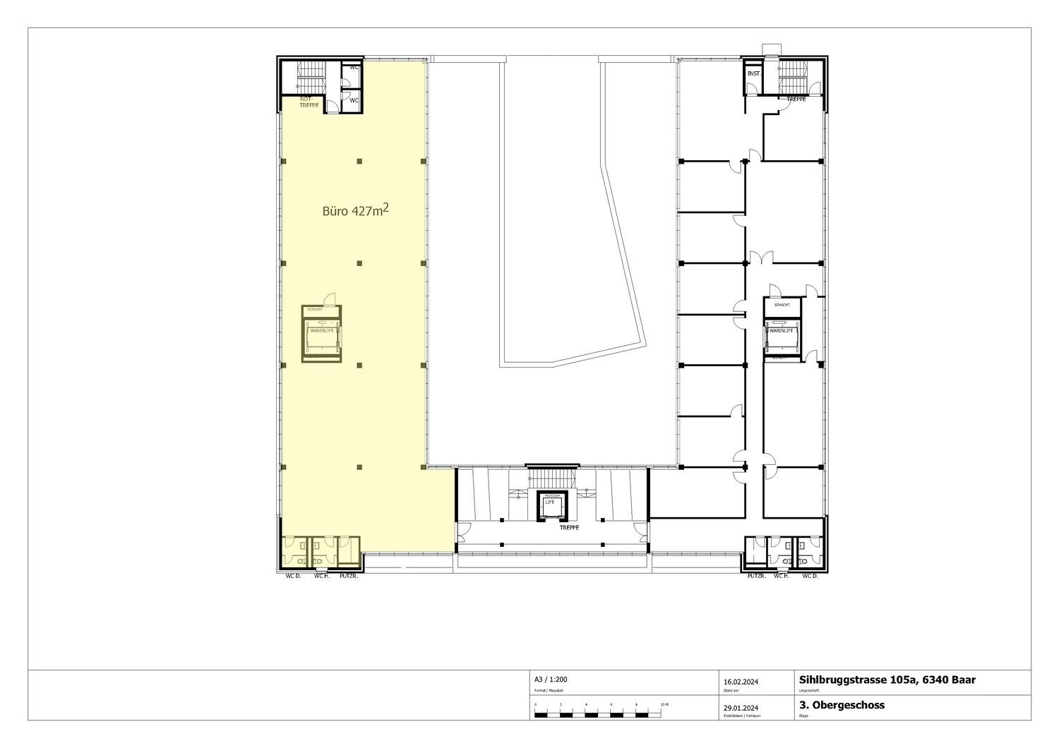 Wir vermieten eine Bürofläche im 3.OG mit 427m2. Ein Mieterausbau vom Vormieter kann übernommen werden. Die Bürofläche verfügt über eigene WC-Anlagen und einen Warenlift.