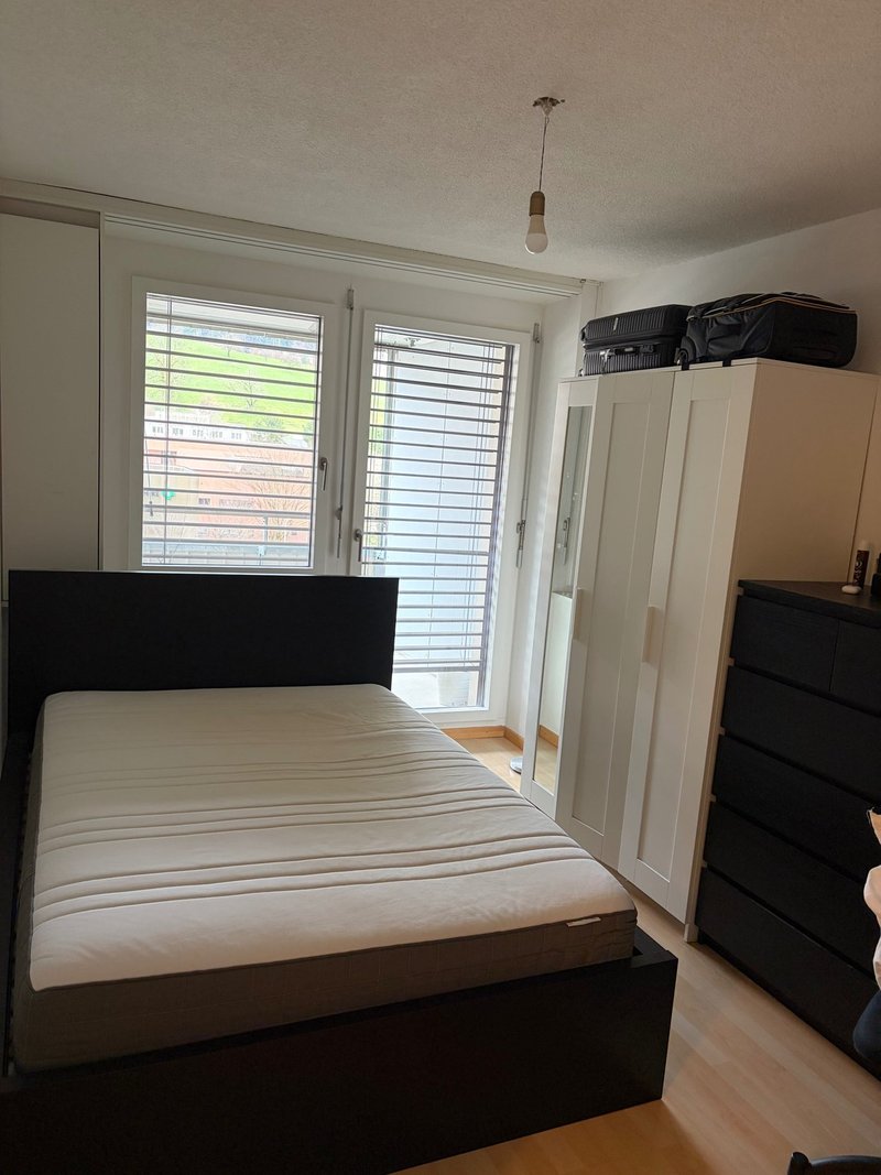 Two furnished rooms are available for temporary rent in a shared apartment in Zurich. The first room is available from 1 April to 1 September 2026, while the second room is available from 1 May to 1 September 2026.