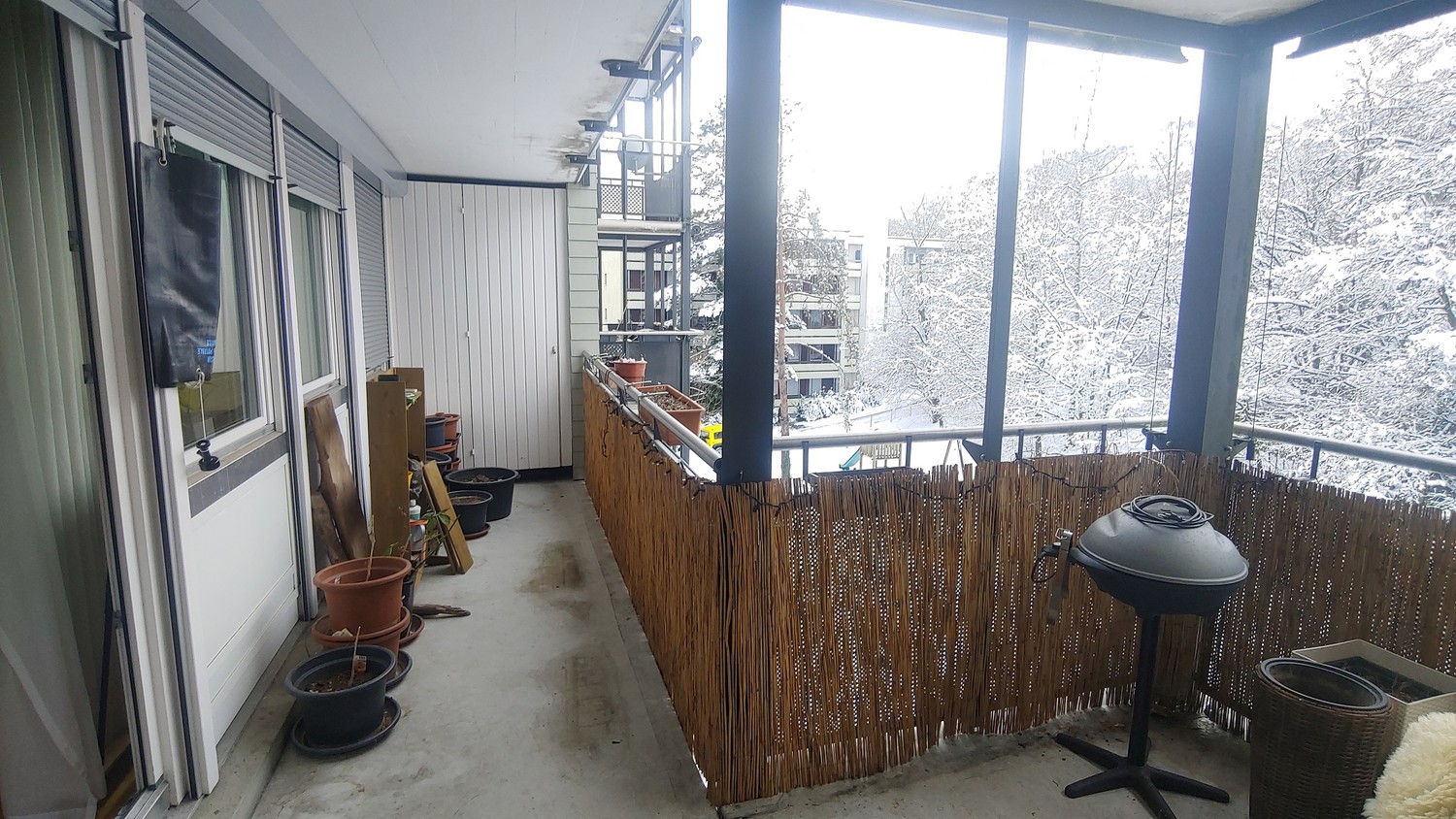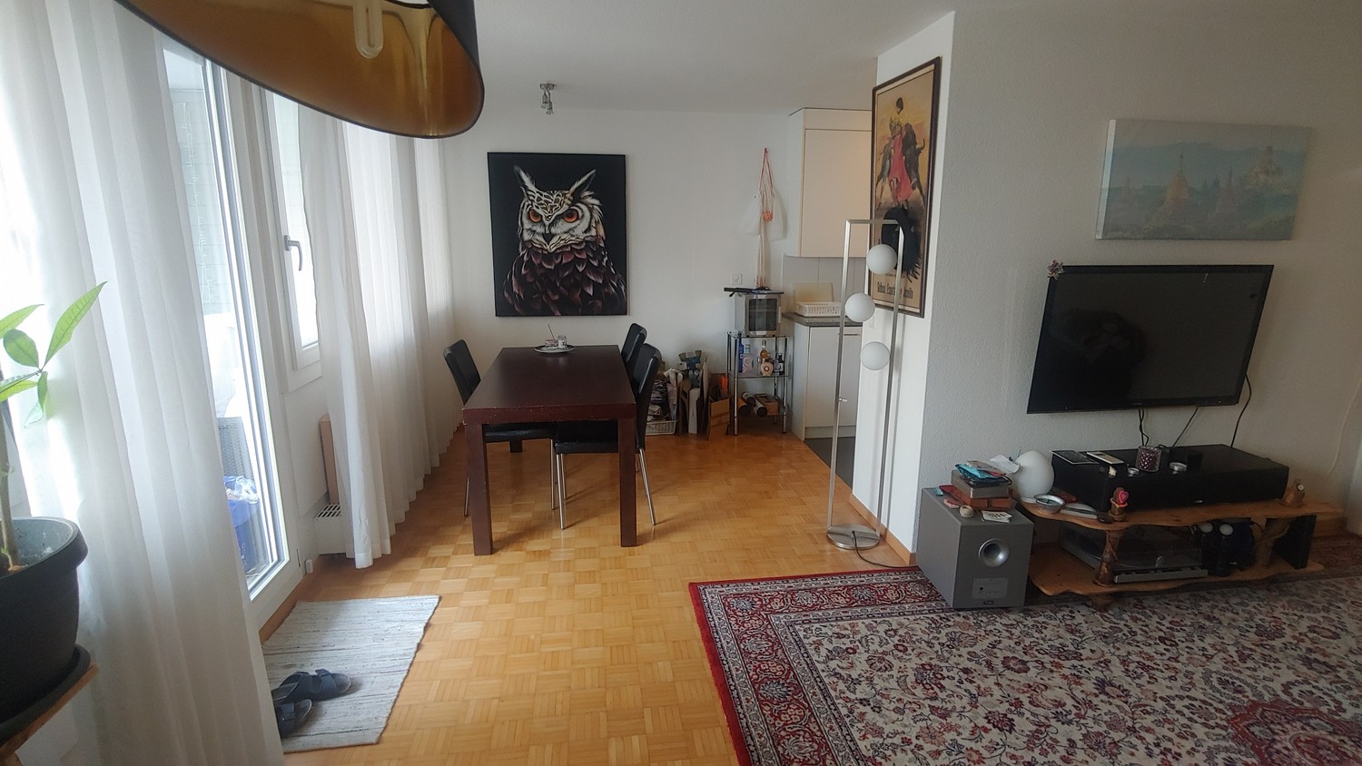Die Wohnung ist geräumig, modern, hat 2 Badezimmer(nur 1 Dusche), einen grossen Balkon und 3 Zimmer zur Verfügung. Das Freie Zimmer ist unmöbliert, grossräumig und hat einen Balkon.