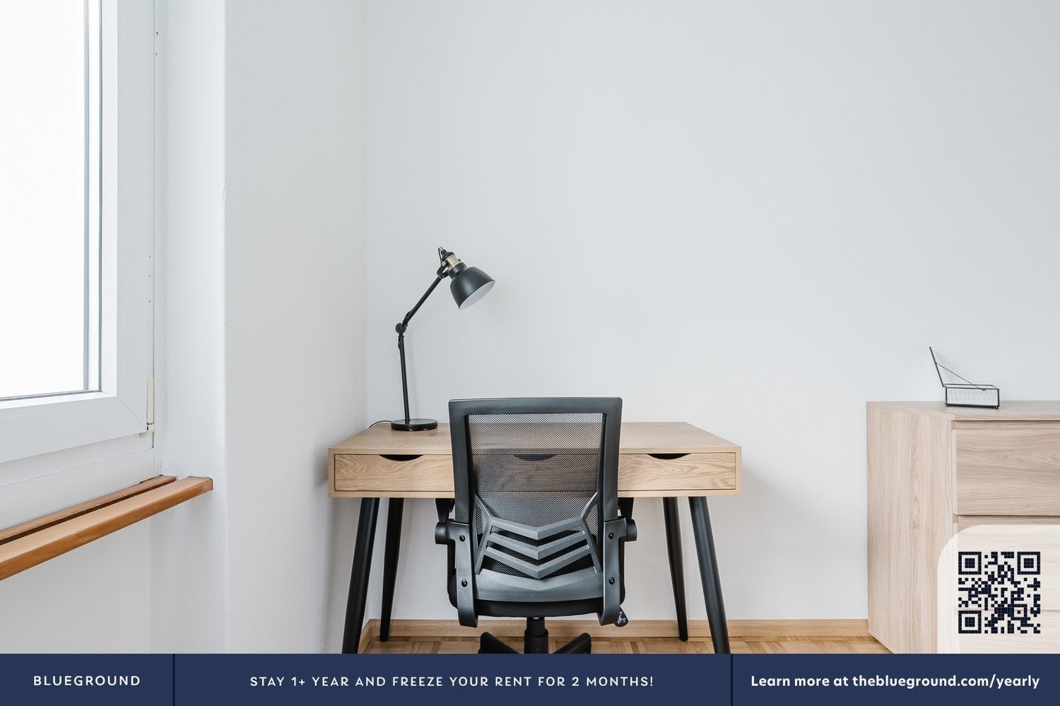 Dieses Blueground Wohnung bietet flexible Mietoptionen, sodass Sie es für drei Monate, ein Jahr oder länger buchen können.Haustiere sind willkommen, allerdings gelten Gewichts- und Rassenbeschränkungen, für die Gebühren anfallen können.Das Parken wird je nach Verfügbarkeit angeboten und ist gebührenpflichtig.Wir sind sehr stolz darauf, dass alle gezeigten Fotos in unseren eigenen Einheiten mit unserer tatsächlichen Einrichtung aufgenommen wurden. Das heißt, wir aktualisieren regelmäßig unsere Dekoration und Möbelanordnung, die von dem abweichen kann, was abgebildet ist.