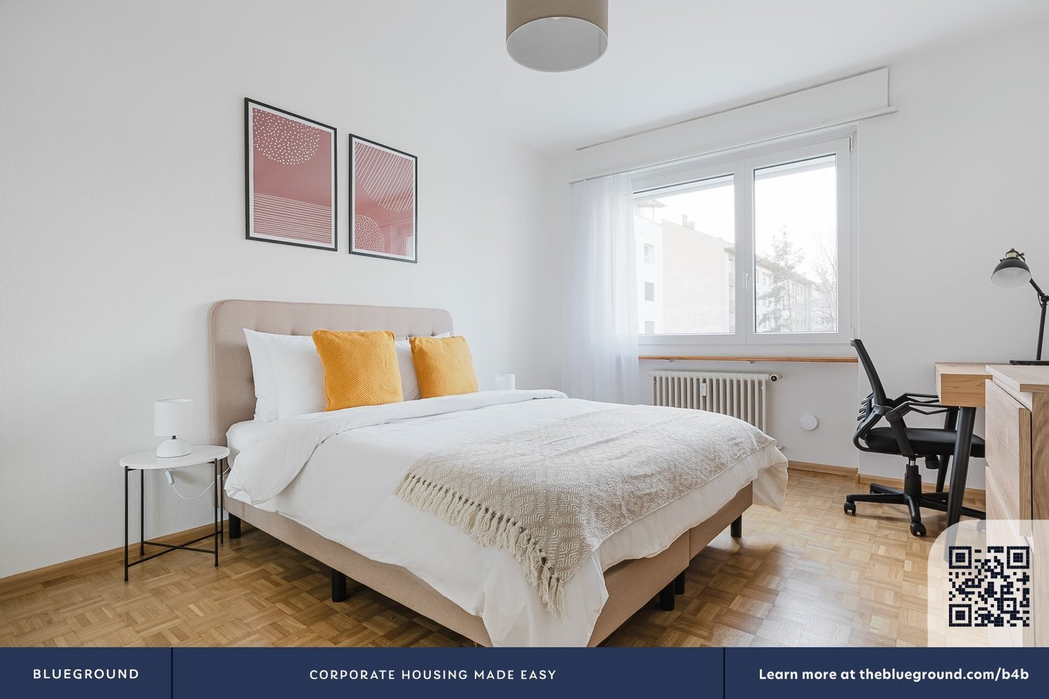 Kommen Sie an und beginnen Sie ab dem ersten Tag zu leben in Basel mit diesem geräumig Zwei-Schlafzimmer Blueground-Wohnung . Sie werden es lieben, nach Hause zu kommen in dieses liebevoll eingerichtete, schön gestaltete und voll ausgestattete Haus Gundeldingen mit atemberaubendem Blick vom Balkon auf die Stadt. (ID #BSL92)