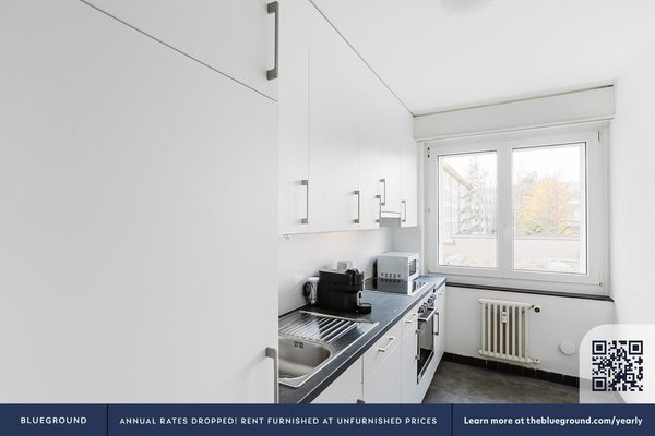 Durchdachtes Design mit maßgeschneiderten Oberflächen und moderner Einrichtung, und eine voll ausgestattete Küche, Sie werden das „Ich bin zu Hause“-Gefühl mit diesem Blueground Wohnung genießen. Egal, ob Sie in Ihrem charmant Wohnzimmer die neuesten und besten Unterhaltungssendungen über den Smart-TV oder den kabellosen Premium-Lautsprecher streamen oder sich auf der hochwertigen Matratze ausruhen – Sie werden sich in alles verlieben, was dieses Gundeldingen Wohnung zu bieten hat.