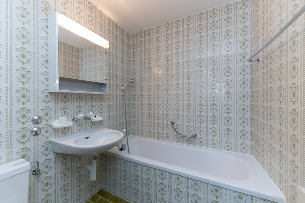 - Badezimmer mit WC, Lavabo und Badewanne