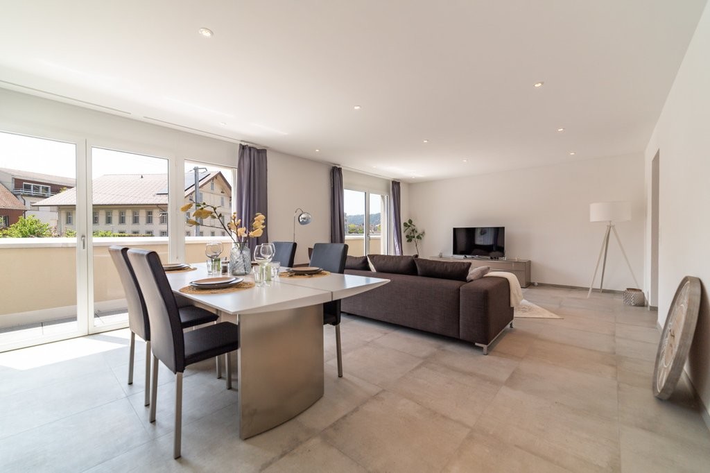 Dank der idealen Lage sind Einkaufsmöglichkeiten wie Migros, Restaurants sowie diverse Dienstleister bequem zu Fuss erreichbar.