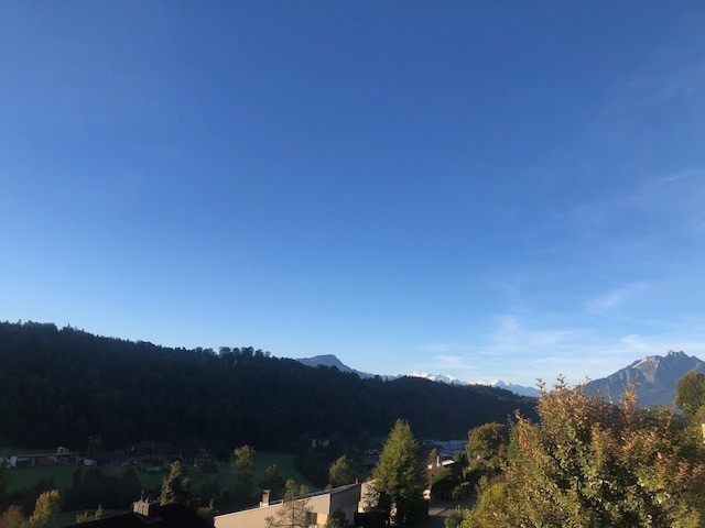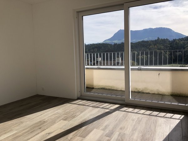Die Wohnung ist wunderschön gelegen: Sie befindet sich am Ende einer ruhigen Quartierstrasse im Hochparterre eines Einfamilienhauses mit Blick auf Rigi und Pilatus, umgeben von Wald- und Wiesenlandschaft.