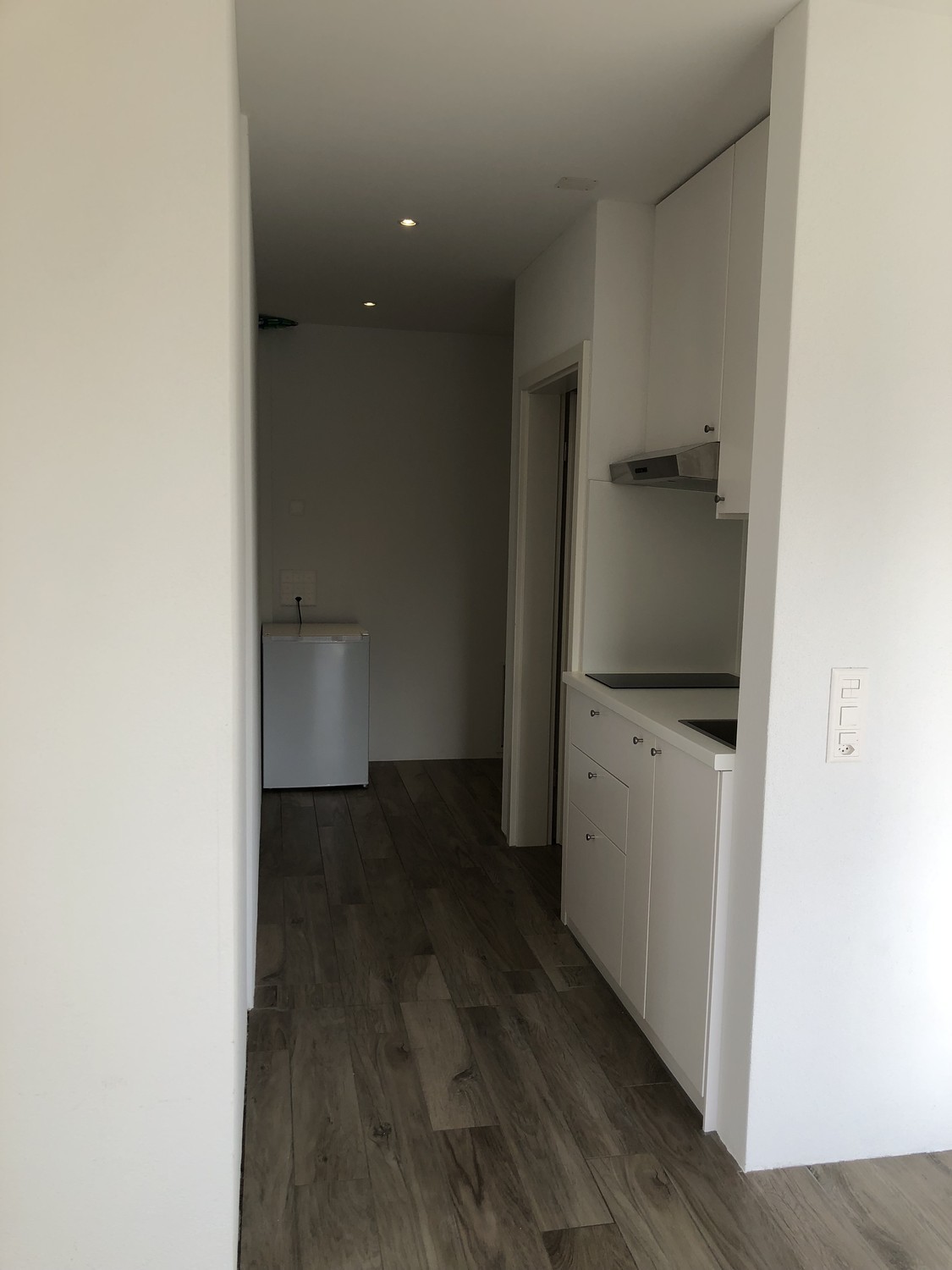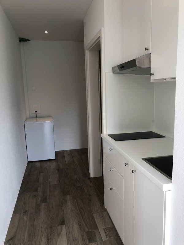Die 1.5 - Zimmerwohnung verfügt über ein grosses, lichtdurchflutetes Zimmer (18m2) mit Blick auf die Rigi und den Meggerwald, welches auf einen kleinen Balkon fuehrt. Die offene, neu eingebaute Kochnische befindet sich ausserhalb des Zimmers im Gang. Über eine Tür gelangen Sie zum modernen grossen Badezimmer mit eigener Waschmaschine und Tumbler.