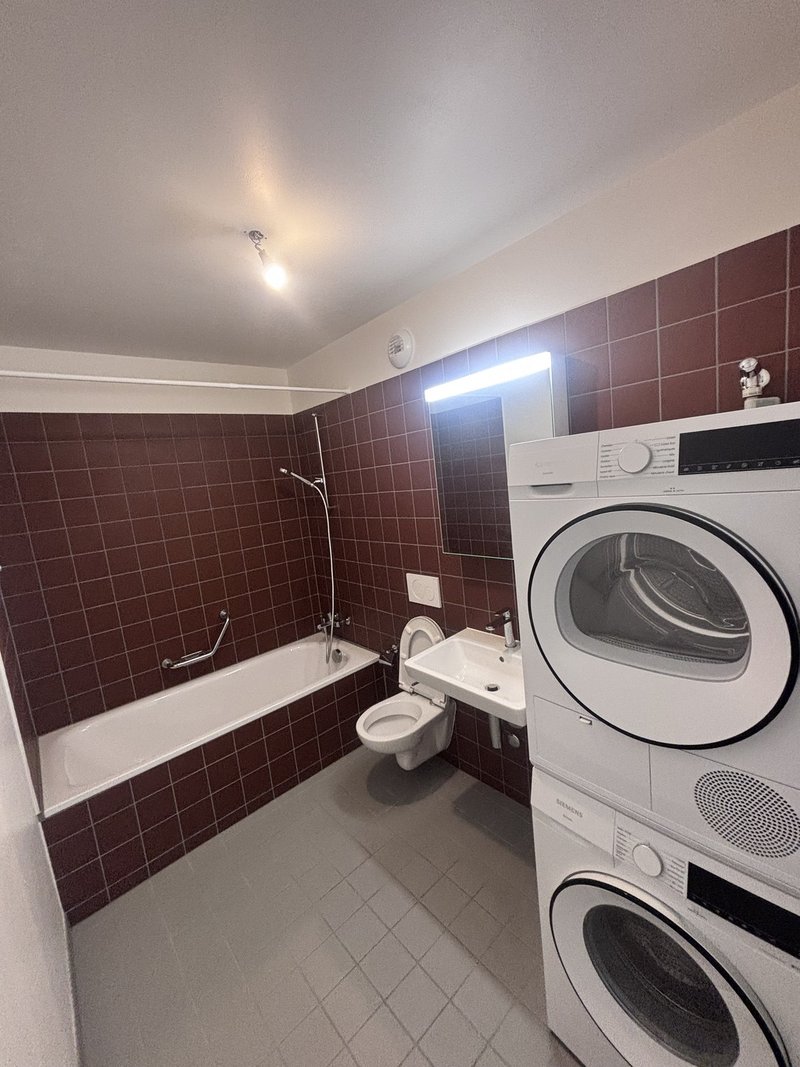 Salle de bain avec sèche-linge et lave-linge