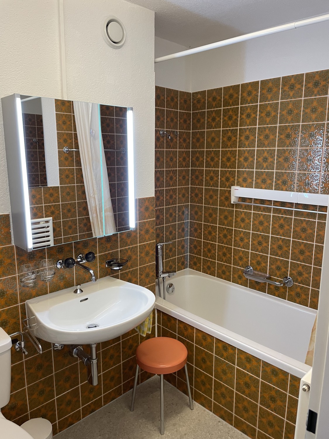 Küchen- und Badezimmer mit Steinplattenboden