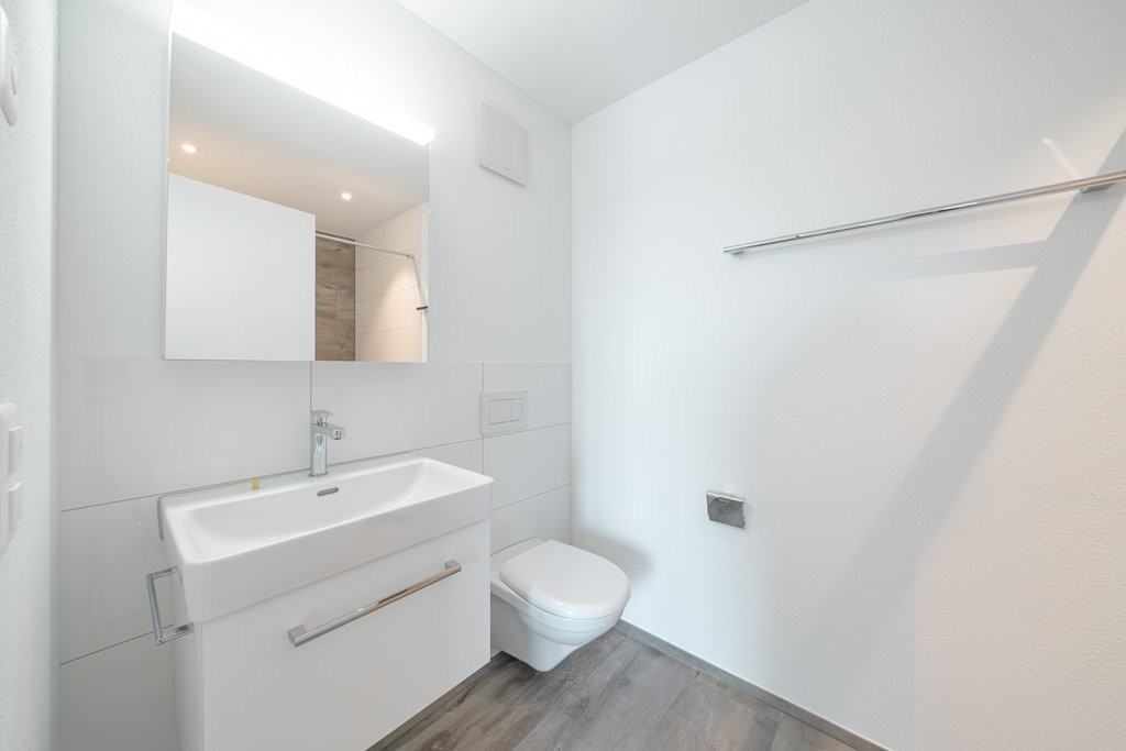 Die Wohnung überzeugt durch einen durchdachten Grundriss, helle Zimmer, eine Garderobe im Eingangsbereich sowie elektrische Storen. Die offene, moderne Küche ist funktional und ein echter Blickfang ,ideal für gesellige Abende.