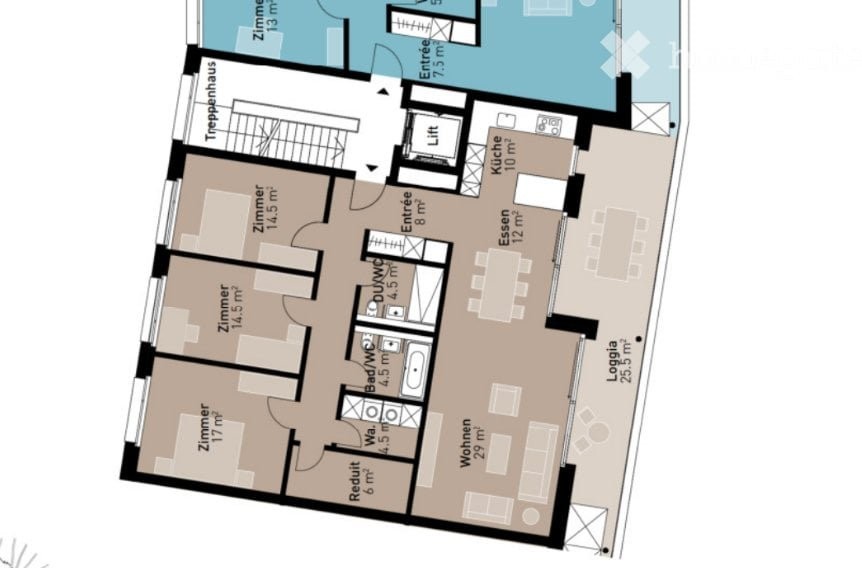 3 Schlafzimmer, 1 Ankleidezimmer, 2 Badezimmer, 1 Waschküche, großer Balkon mit 25 m².