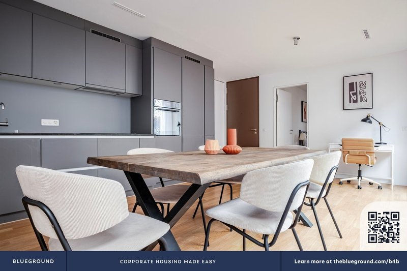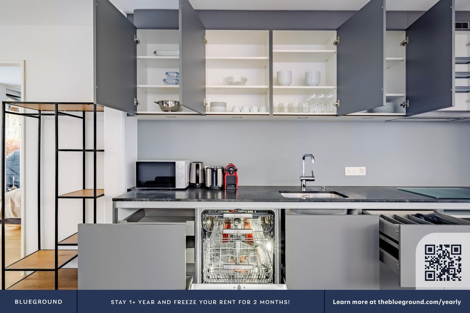 Dieses Blueground Wohnung bietet flexible Mietoptionen, sodass Sie es für einen Monat, ein Jahr oder länger buchen können.