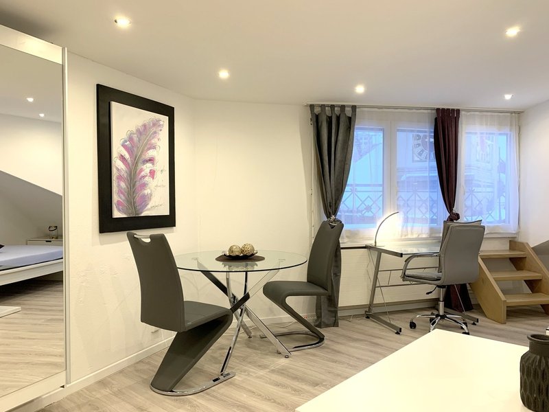 Available from March 1, 2026, the fully furnished 1-room apartment “BellVue Terrace” is located just steps from the Marktplatz and Kantonsschule – right in the city center of St. Gallen.