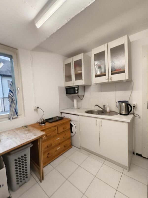 Ein Office/Pausenraum mit Ausguss und Waschmaschine sowie einem Tisch und Stühlen mit zusätzlichen 8 m2 Nettonutzfläche ist ebenfalls im Mietpreis mit enthalten.