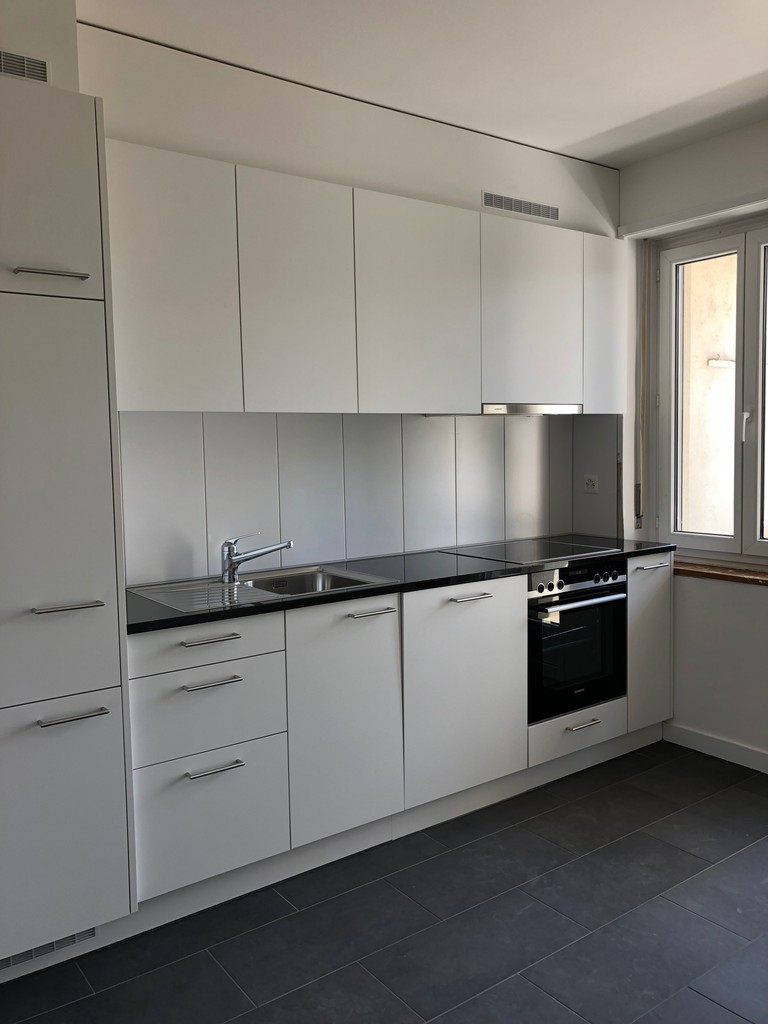 Die Wohnung überzeugt mit hellen, grossen Räumen, moderner Küche und sonnigem Balkon. Im Eingangsbereich steht ein praktischer Einbauschrank.