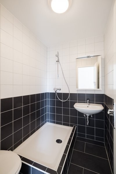 - Dusche/WC mit dunklem Plattenboden