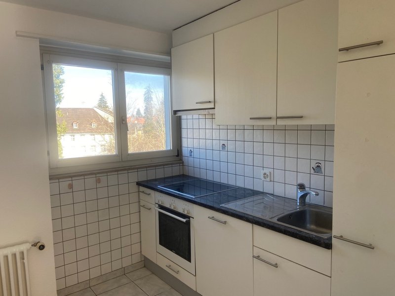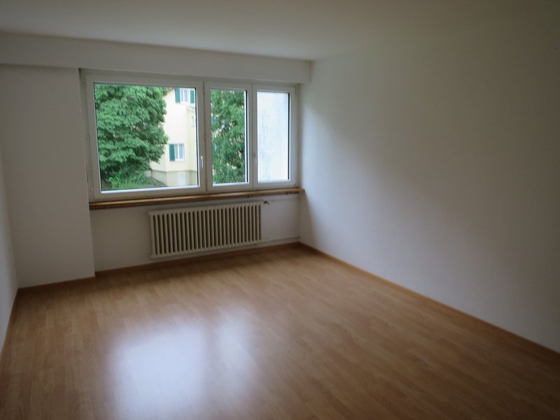 Sehr schöne, helle Wohnung im ruhigen St. Georgen. Moderne Küche mit Geschirrspüler, Kühlschrank und Keramikherd. Badezimmer mit Badewanne, WC und Lavabo. Bodenbeläge Parkett, Laminat, Platten. Balkon mit Nachmittag- und Abendsonne.