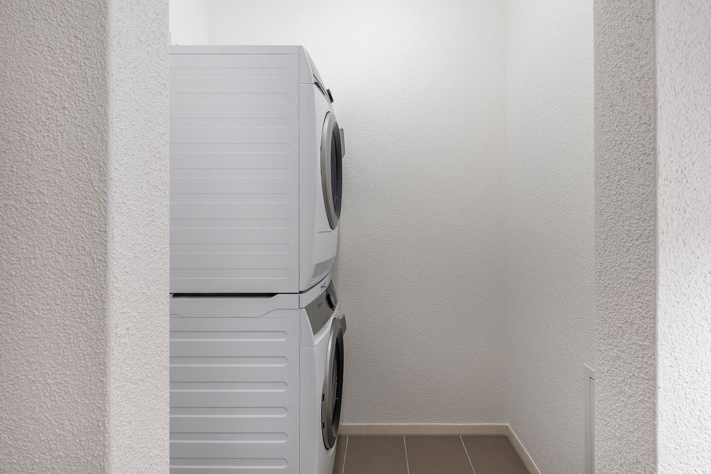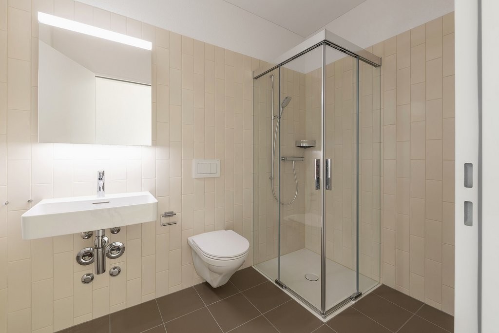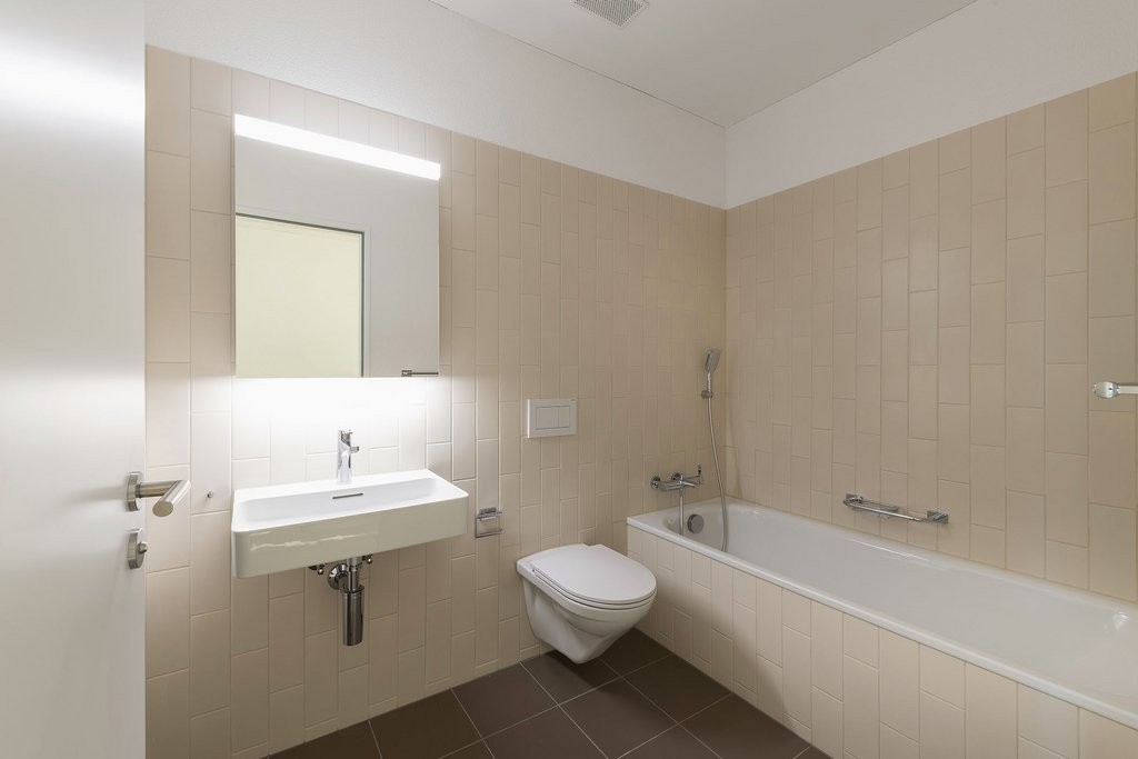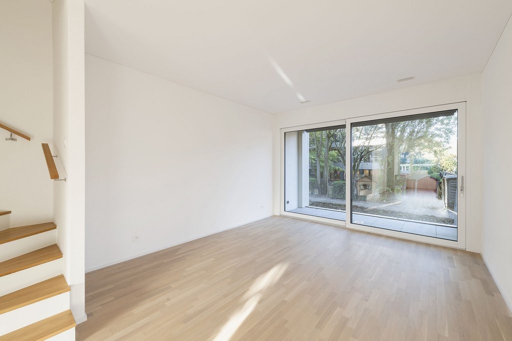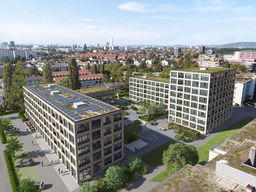 Die Wohnüberbauung bietet einen attraktiven Aufenthaltsbereich im Innenhof mit Grünpflanzen, Sitzgelegenheiten, Pflanzbeete im Schrebergarten und Spielmöglichkeiten für Kinder sowie zahlreichen Velo-Abstellplätzen (z.T. gedeckt).