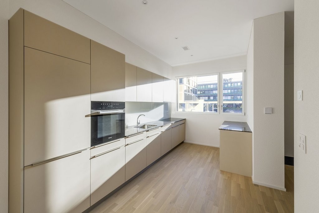 - Moderne Küche mit Einbaugeräten der Marke Miele (Backofen, - Induktionsherd, Geschirrspüler, Kühl- und Gefrierkombi)