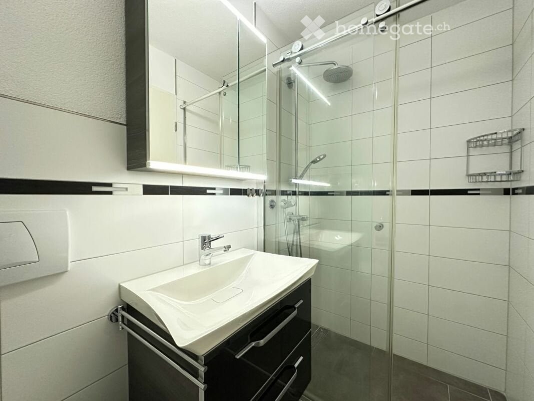 Dein Wohn-(T)raum!!! Wohlfühloase mit über 50 m2 Terrasse Nord und Süd. Hohe Räume mit Dachschräge. Alle Fenster mit Insektenschutzgittern ausgestattet, elektrische Sonnenstoren, Klimageräte in Schlaf- und Wohnzimmer, Waschmaschine und Tumbler in der Wohnung, lichtdurchflutetes Büro für HomeOffice-Tage. Haustiere nicht erlaubt. Nichtraucherwohnung! Ideal für zwei Berufstätige (Paar oder WG), die den Feierabend auf der Terrasse geniessen möchten. ÖV-Anschluss in 200 m zu erreichen. In der Miete sind NK (àKonto 250.-) und 1 TG-Platz (120.-) enthalten!!!
