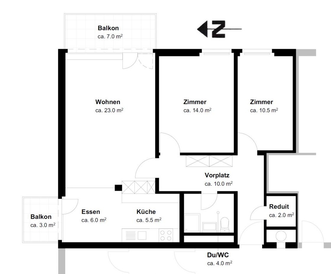 Ein besonderes Highlight sind die zwei Balkone, welche zusätzlichen Aussenraum bieten und den Wohnkomfort deutlich erhöhen.