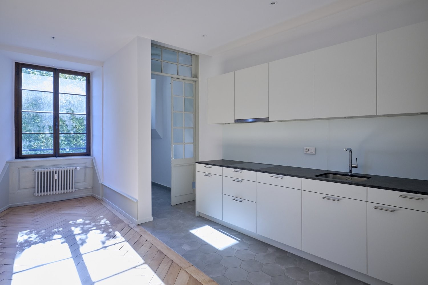 - Grosse, helle Wohn- und Schlafräume mit Holzboden