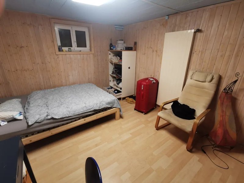The room is approximately 13 m² in size and is located in the basement of the house. It has only one relatively small window and therefore receives little daylight. Our shared flat is located in a detached house with a garden🌿. Delicious berries🍓, grapes🍇, apples🍎, a terrace lounge, a barbecue area🔥 and probably the largest sage plant in Bern await you there. A quiet retreat, as there are only other gardens around... often you hear nothing but birdsong🐦⬛️. In 7 minutes you can walk to the 🚃 Bümpliz Nord railway station, the centre of Bümpliz or the outskirts of the city with a small forest. By public transport or bicycle, you can reach the centre of Bern in a total of 15 minutes.
