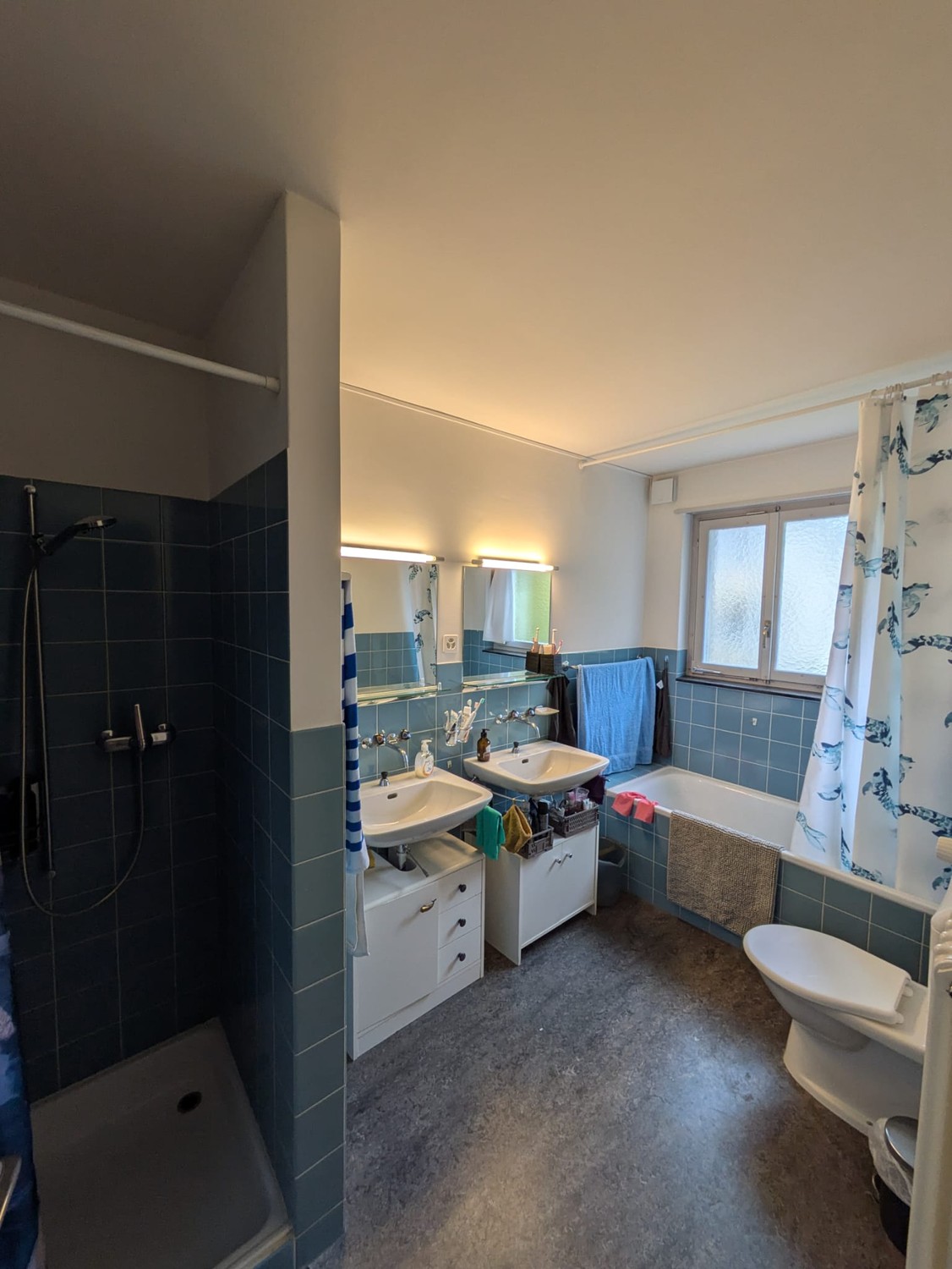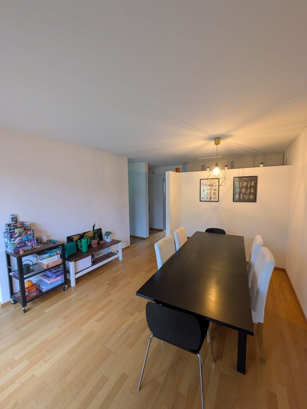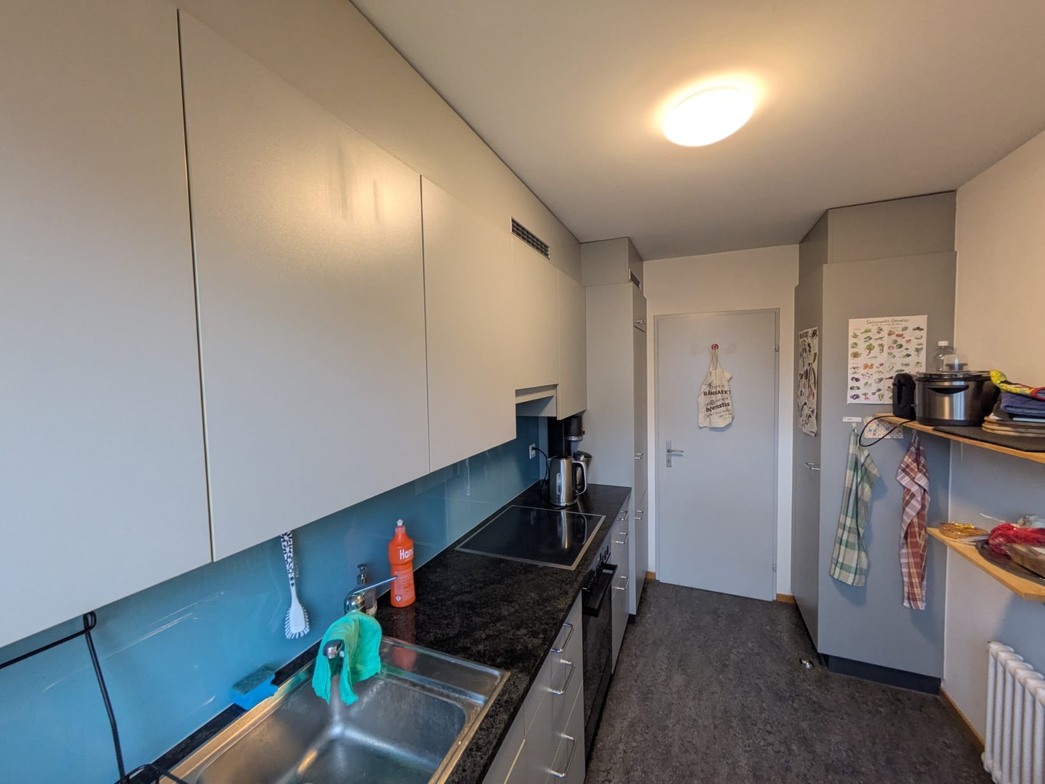 Das Zimmer ist 10,4 m² gross und kann bei Bedarf teilmöbliert übernommen werden (Regal, Matratze, Schrank). Das Zimmer ist Teil einer grosszügigen, hellen Wohnung mit gut ausgestatteter Küche, Dusche, Badewanne, zwei WCs und grossem Balkon. Im gemeinsamen Wohnzimmer befinden sich als Hauptelement ein Sofa und ein Tschuttikasten, welcher gerne für intensive Spielrunden zur Verfügung steht. Gleich um die Ecke findest du öV-Anschlüsse, die dich in knapp 15min zum Zürich HB, Bhf Altstetten oder Hönggerberg bringen. In wenigen Minuten stehst du in Migros/Coop/Denner/Aldi oder diversen Fachgeschäften, die das Zentrum Regensdorf zu bieten hat. Hast du genug öV- und Einkaufsrummel erlebt, kannst du dich in den nahen Wald zurückziehen. Der nahe Katzensee bietet zudem im Sommer eine schnelle Abkühlung (und im Winter für die Hartgesottenen den wöchentlichen Immunsystembooster).