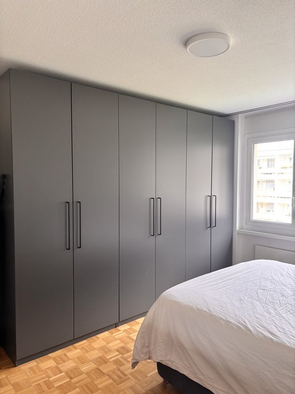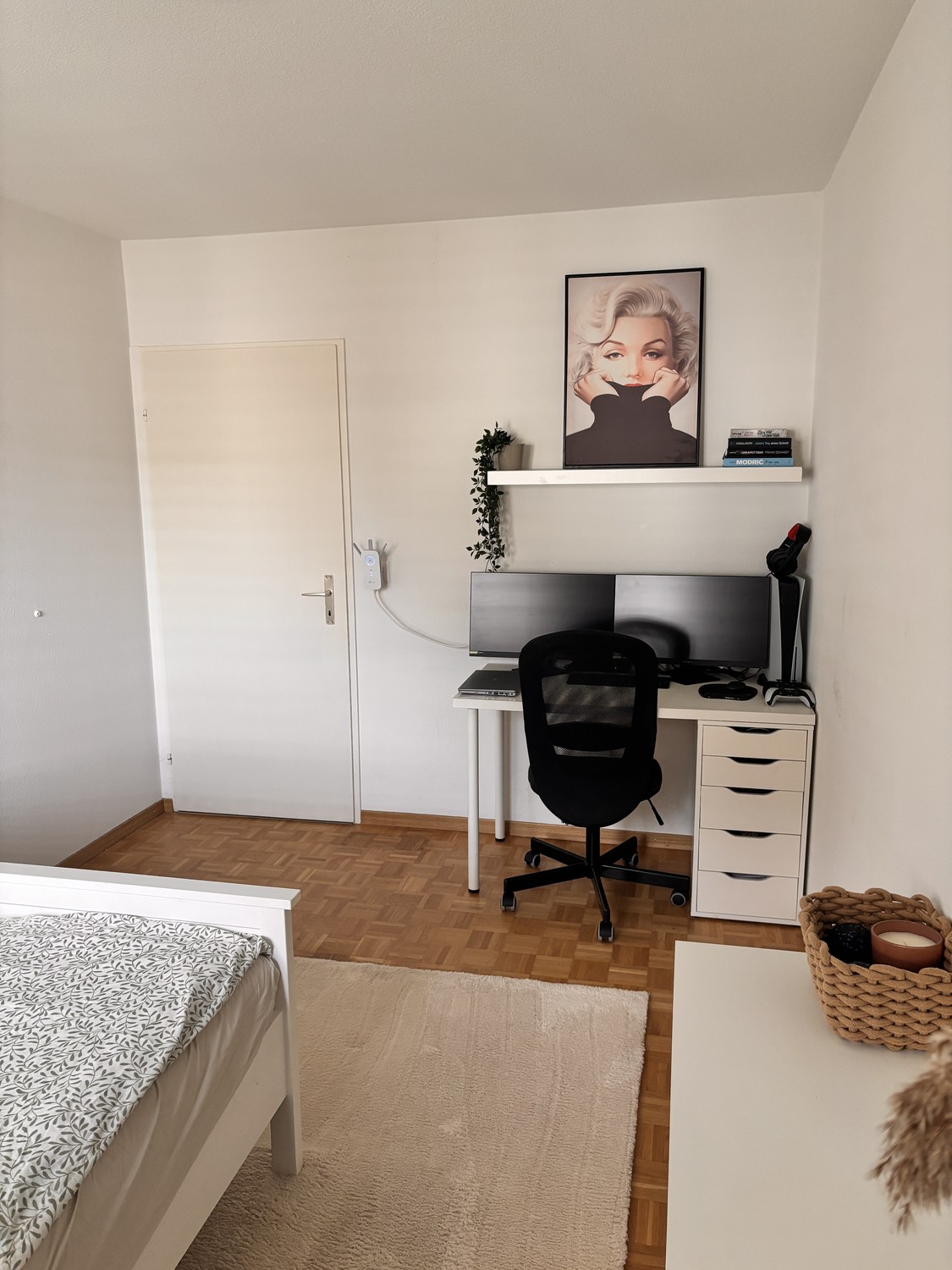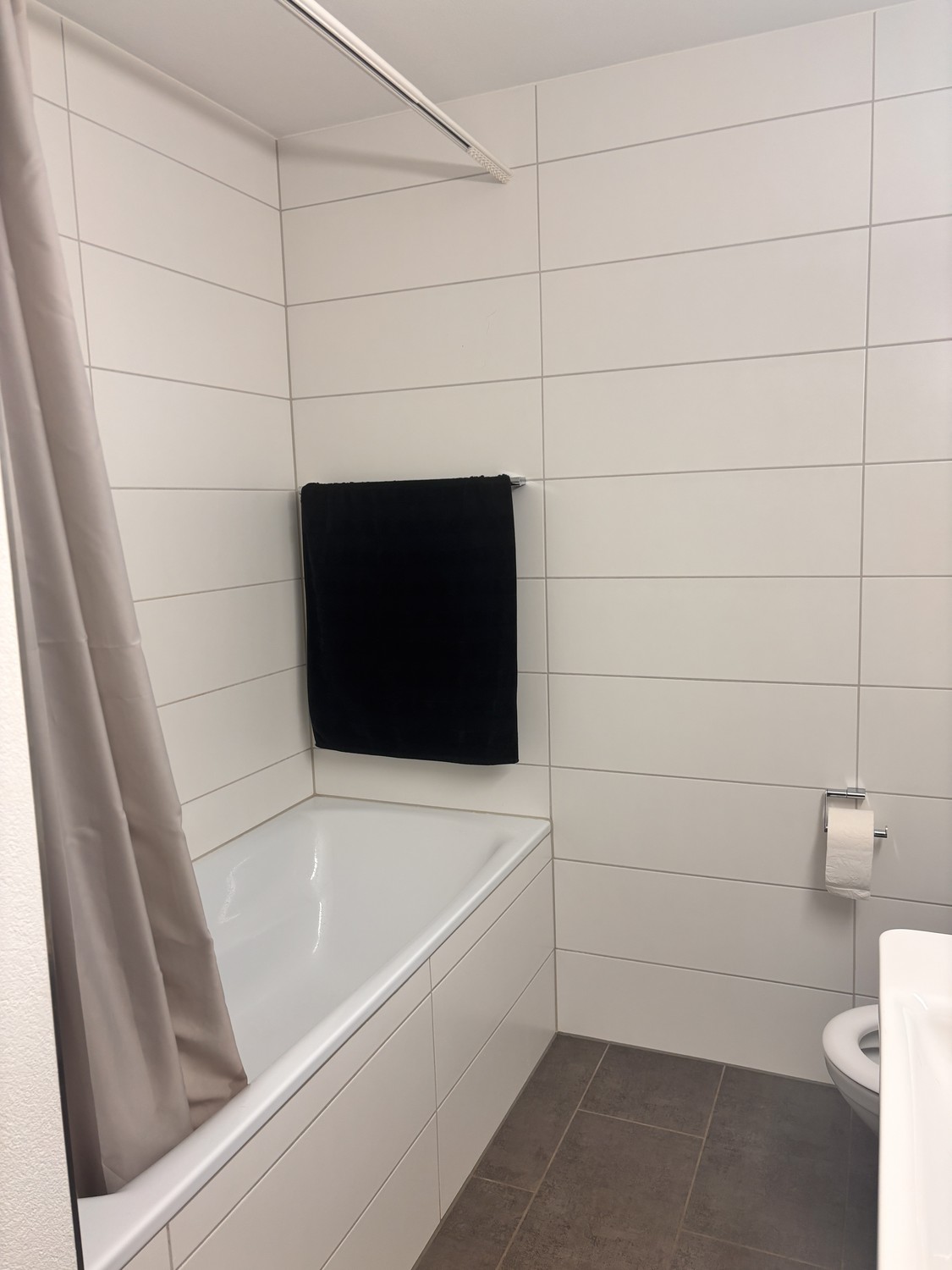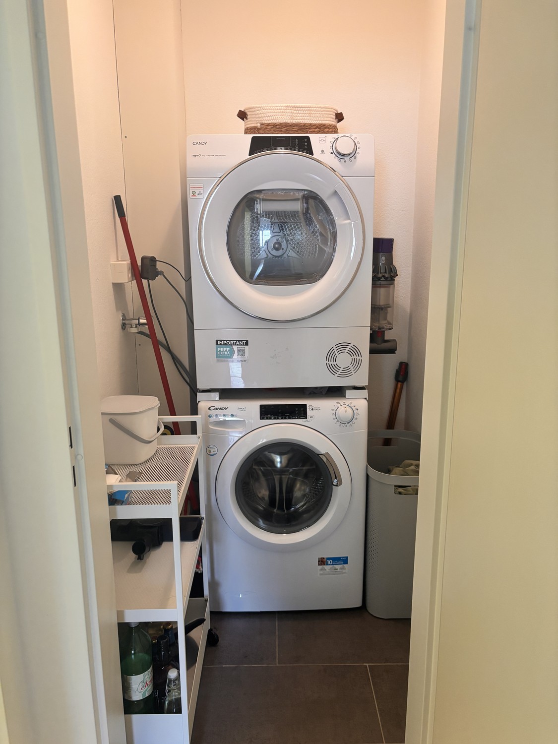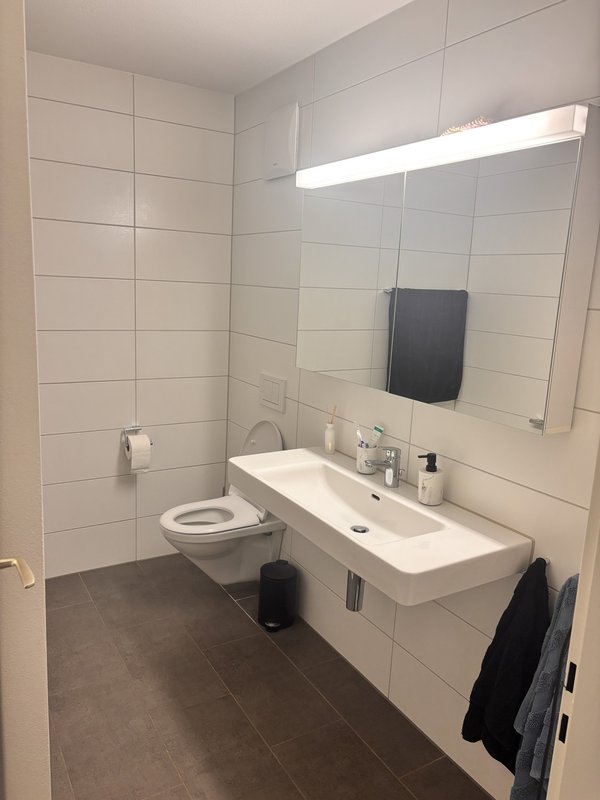 Die Küche verfügt über ein Glaskeramik-Kochfeld, Kühlschrank, Backofen und Geschirrspüler. Die Einbauschränke im Eingangsbereich bieten viel praktischen Stauraum. Der grosse Balkon mit Blick ins Grüne und Abendsonne lädt zum Verweilen ein.