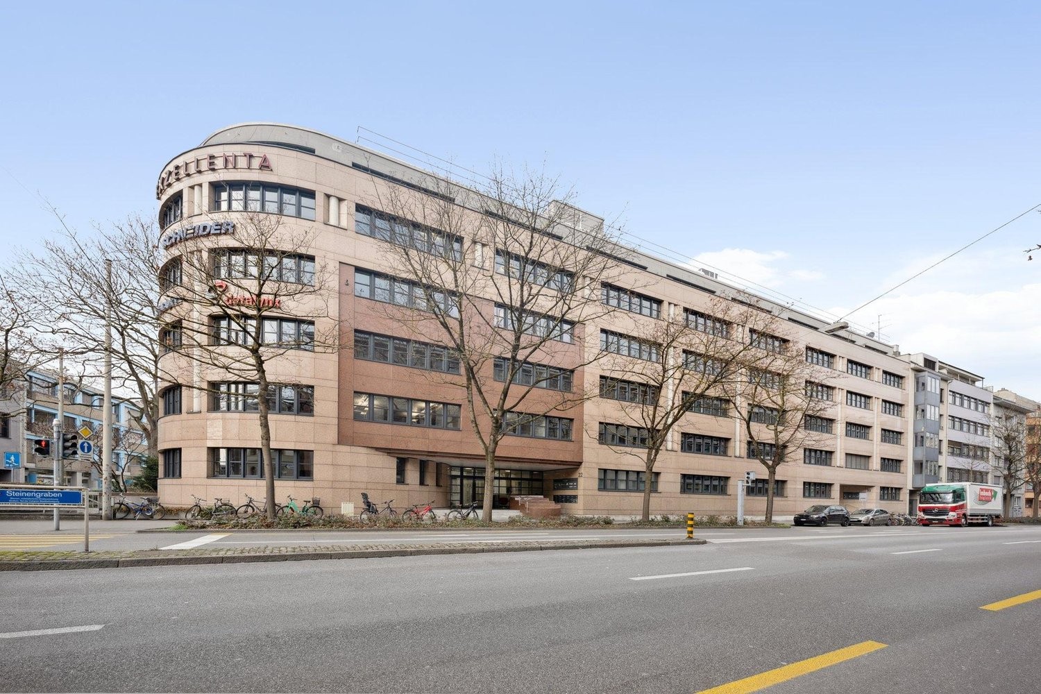 Einstellhallenplätze und Archivräume können hinzugemietet werden.