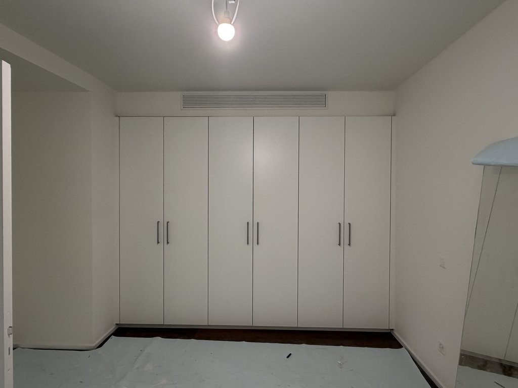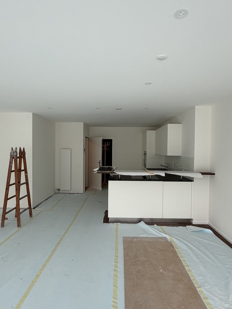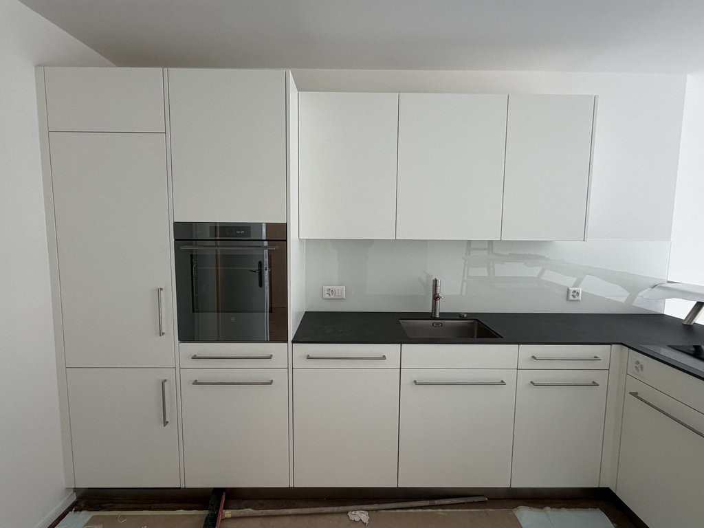 Die Wohnung verfügt über ein modernes Badezimmer mit Dusche und WC sowie eine offene Einbauküche mit Bora-Abzug . Parkettboden , LED-Deckenbeleuchtung und massgefertigte Wandschränke im Schlafzimmer , teilweise mit Innenbeleuchtung, schaffen ein hochwertiges Wohnambiente.