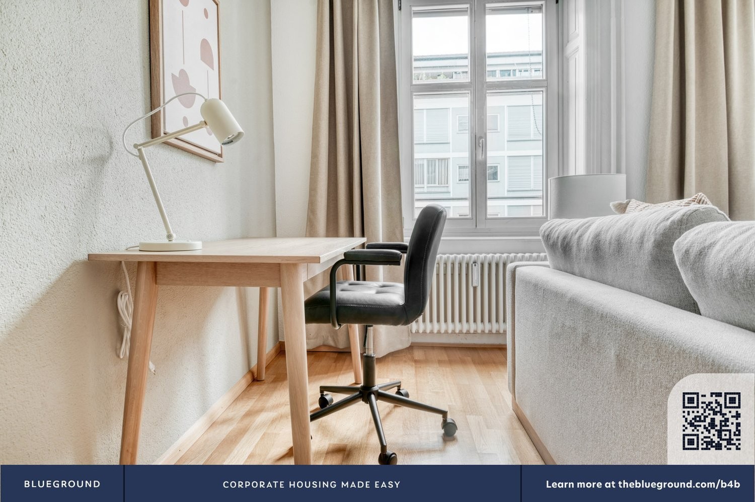 Kommen Sie an und beginnen Sie ab dem ersten Tag zu leben in Basel mit diesem bequem Ein-Schlafzimmer Blueground-Wohnung . Sie werden es lieben, nach Hause zu kommen in dieses liebevoll eingerichtete, schön gestaltete und voll ausgestattete Haus Basel-Vorstaedte . (ID #BSL11)