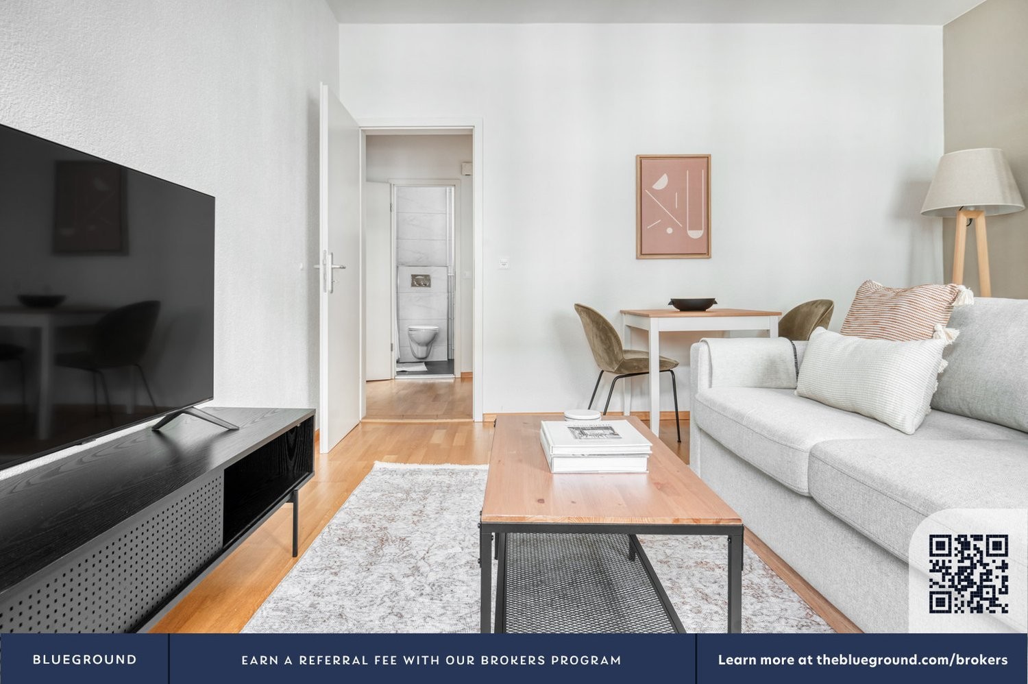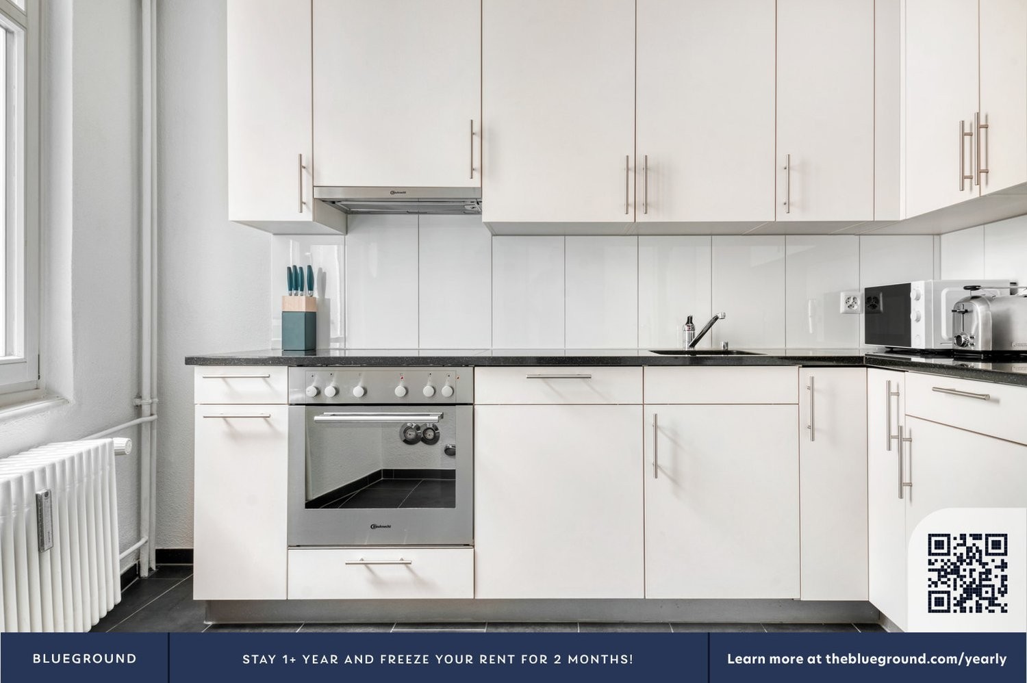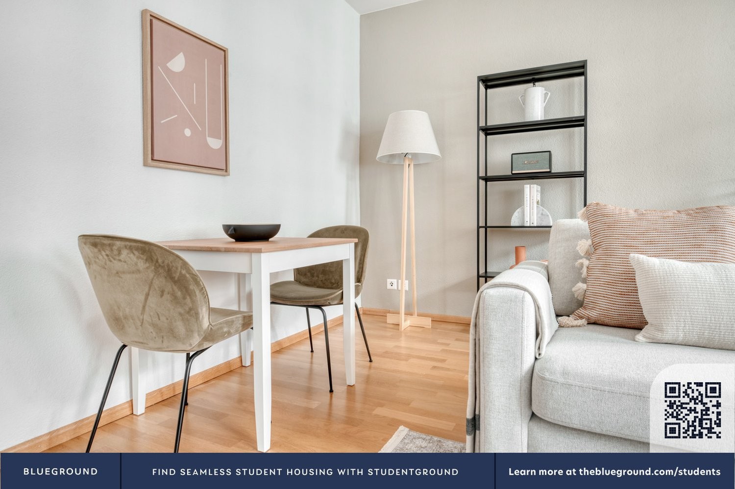 Wie bei jedem Blueground Wohnung finden Sie einen durchdacht gestalteten Raum mit schönen Möbeln. und eine voll ausgestattete Küche in diesem Ein-Schlafzimmern Immobilie. Und dank unserer hochwertigen Matratzen können Sie sich entspannen, weil Sie sich immer wie zu Hause fühlen werden. Wenn Sie Lust auf etwas Spaß haben, können Sie die Basel -Atmosphäre genießen oder sich die Unterhaltung mit dem kabellosen Premium-Lautsprecher oder dem Smart-TV direkt nach Hause holen. Diese Wohnung bietet auch Wäscherei in der Wohnung.