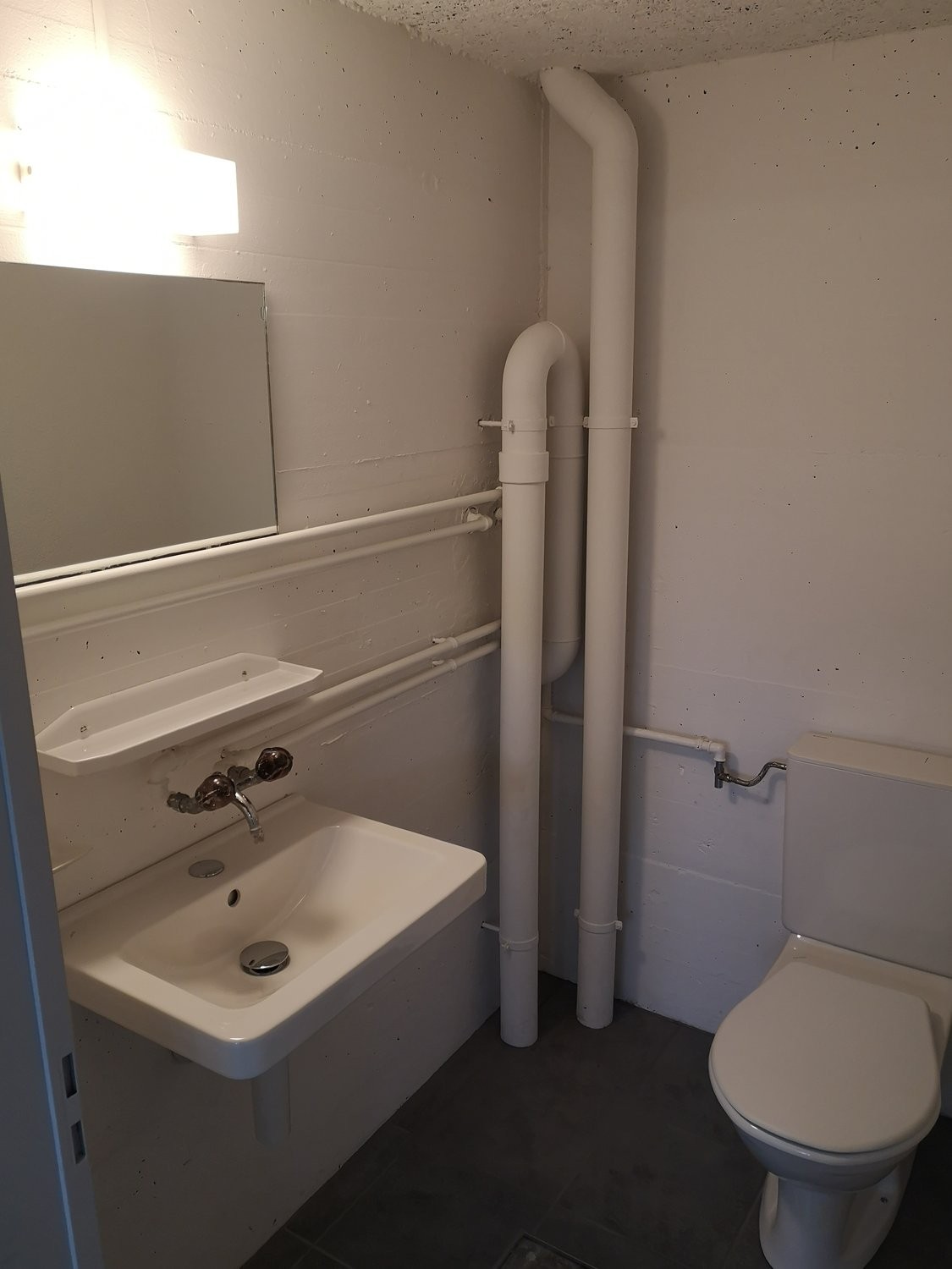 Zentral gelegen WC mit Lavabo Warmwasser Bodenplatten Tageslicht Beheizt Zugänglichkeit von aussen