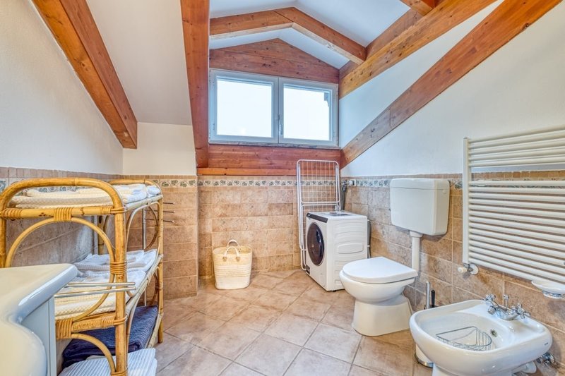 Badezimmer 1: Das Badezimmer hat eine Dusche, ein Bidet, ein WC und eine Waschmaschine.
