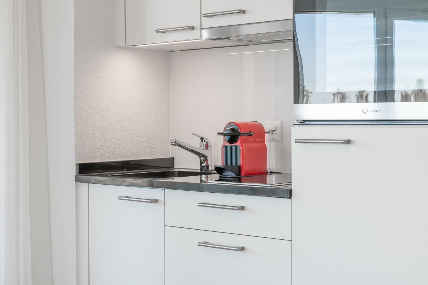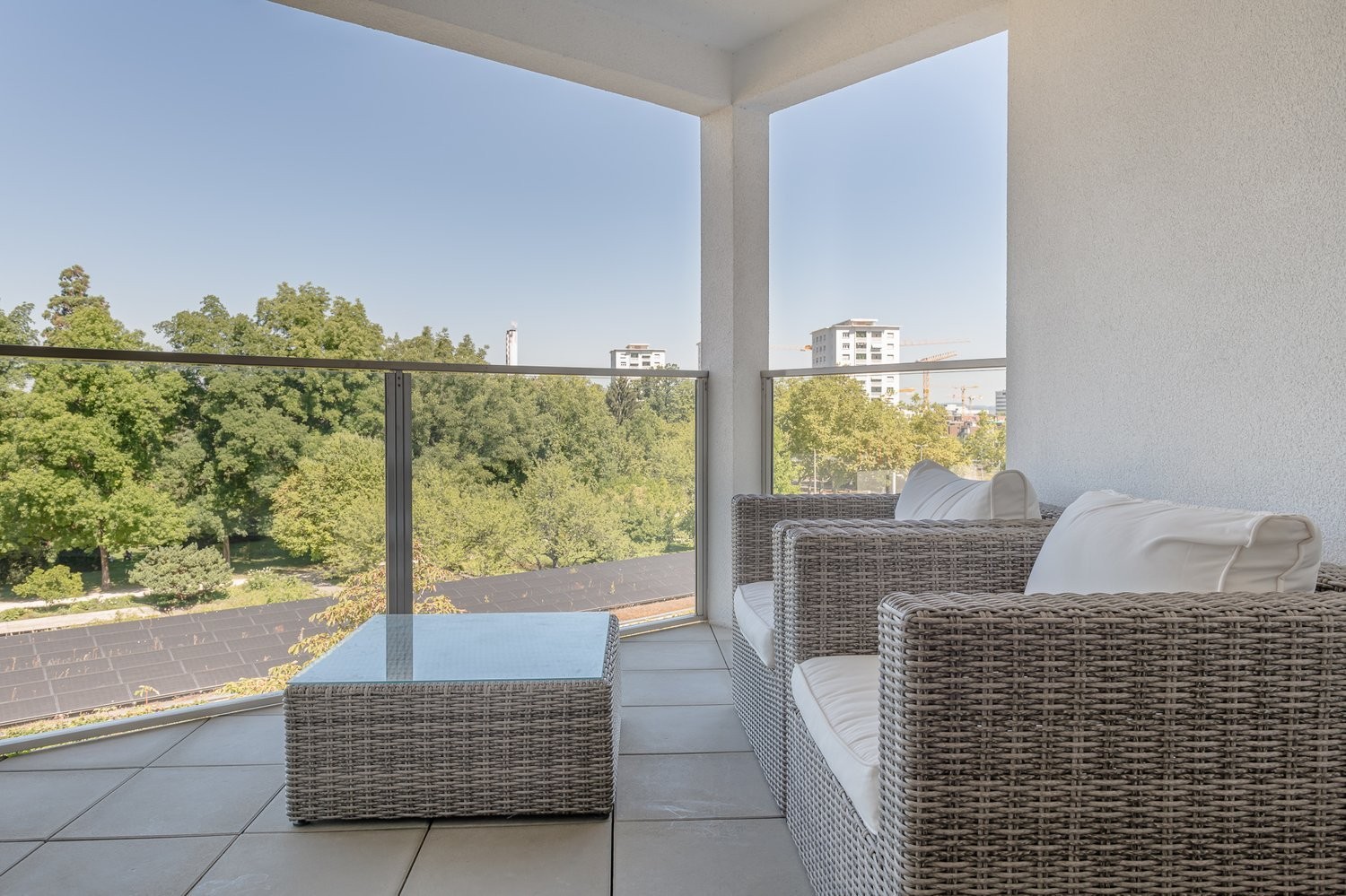 Und die Serviced Apartments? Wir vermieten an der Strassburgerallee 1 diverse 2.5 Zimmer (mit und ohne Balkon). Unsere Serviced Apartments sind vollständig eingerichtet und bieten alles von der High-Speed Internet Leitung, der Küchenaustattung mit Geschirr und Besteck, Wasserkocher bis hin zum Bügeleisen und der Bett- und Frotteewäsche.
